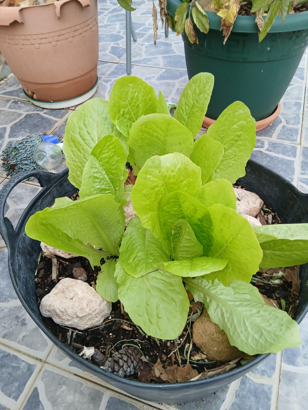 Römersalat und ein 5 Jahre alter Olivenbaum.