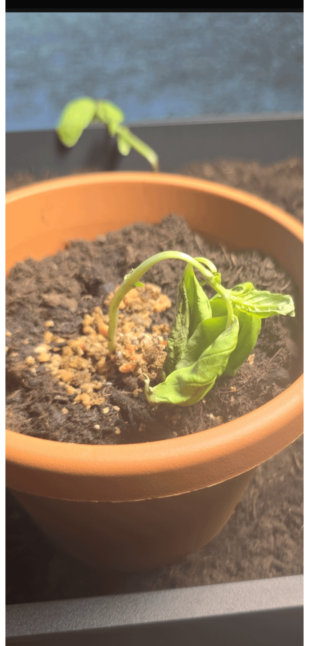 Ich begann, Basilikum aus Samen anzubauen und bekam zu Weihnachten eine Basilikumpflanze geschenkt. Meine Basilikumsamen wurden bis vor ein paar Tagen in meinem Zimmer unter einer Wachstumslampe gezüchtet, weil ich sie in diesen Pflanzer auf meiner abgeschirmten Veranda im Freien überführt habe. Ich habe Basilikum, Salat und Tomaten. Ich habe keine Ahnung, warum mein Basil stirbt. Ich habe eine Wachstumslampe, weil meine Veranda nicht viel Sonne bekommt. Das Licht bleibt 8 Stunden oder länger eingeschaltet. Anfangs habe ich das Licht nur für 4 Stunden eingeschaltet, weil mir auffiel, dass mein Basil schlaff aussah. Ich habe das Basilikum nur dann gegossen, wenn sich die oberste Erdschicht trocken anfühlt, und habe gestern Abend sogar etwas organischen Dünger hinzugefügt. Mein Basil hängt schlaff und wird dann manchmal wieder munter, daher bin ich mir nicht sicher, wo das Problem liegt! Ich habe die Pflanzen erst am Samstag in diesen neuen Pflanzkasten gebracht. Der Boden ist eine Mischung aus schwarzem Kuhkompost und organischer Hochbeet-Pflanzmischung.