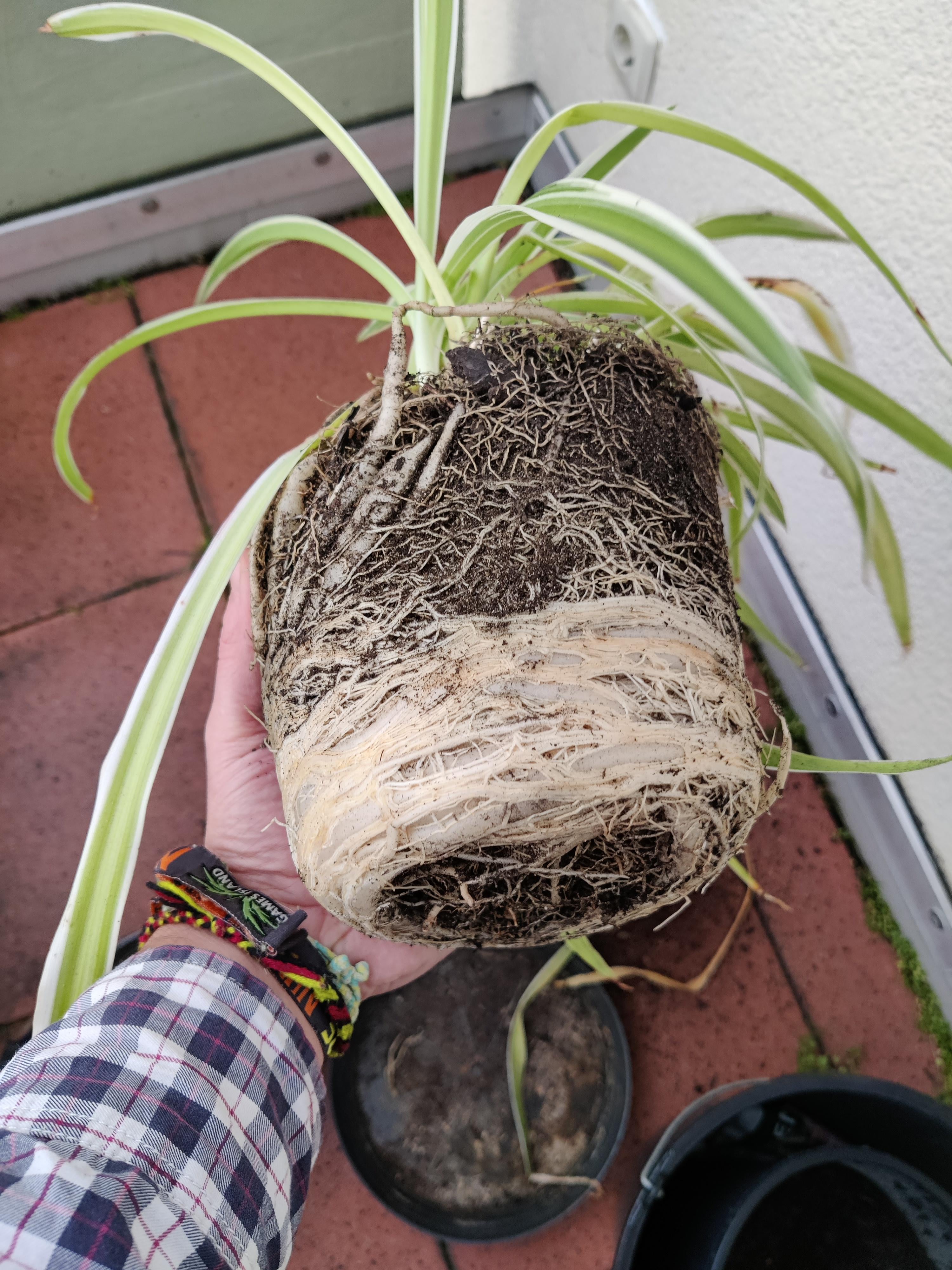 1. So weit wie möglich unten abschneiden und im Wasser neue Wurzeln bilden lassen.