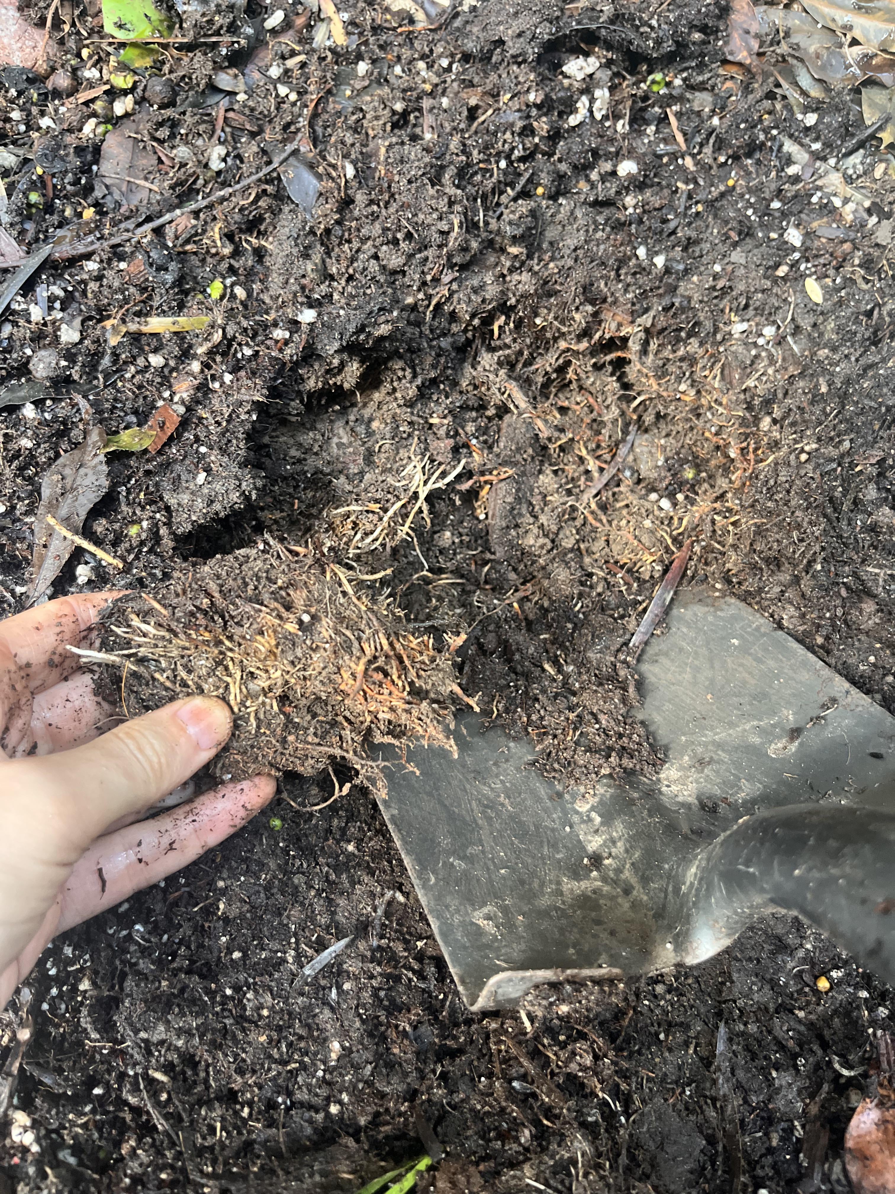 Warum passiert das?? Keine Ahnung, woher sie kommen. Wir züchten hauptsächlich Sukkulenten. Ich schwöre, in dem Bereich, den ich ausgrabe, sieht es so aus, als ob es zu 70 % aus Wurzeln besteht