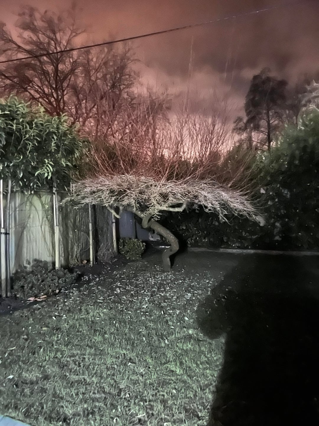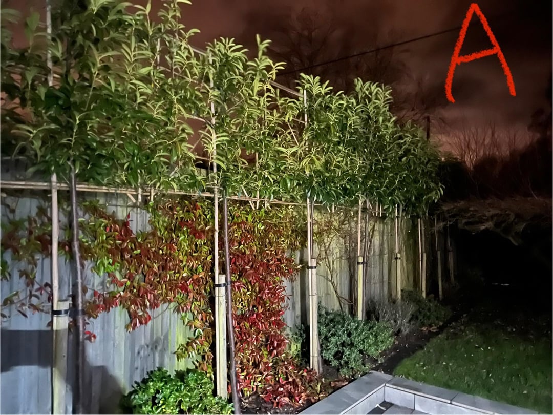 Why on earth have you taken these at night? Secondly, it looks like a fair bit has been spent on this garden (pleached privacy trees and whatnot). Why are you in such a rush to alter things straight away? Wait until spring at least…