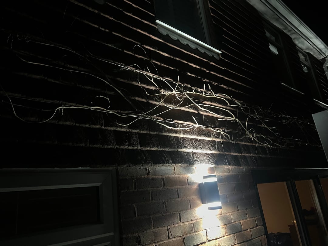 Prune the whippy bits of the wisteria back to 7 buds from the main stem now…(In daytime)