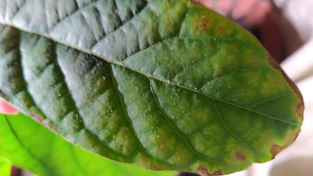 Seit letztem Herbst züchte ich ein paar Avocadobäume aus Kernen. Da ich mich in einer kälteren Winterzone befinde, stehen sie bis zum nächsten Frühling drinnen neben einem Fenster und auch nachts unter einer Wachstumszwiebel. Vor ungefähr einem Monat bemerkte ich diese braunen Flecken auf ein paar Blättern. Ich habe sie jeden zweiten Tag mit etwa ein paar Sekunden Wasser aus einer Gießkanne gegossen. Ich lasse den Boden nicht zu sehr austrocknen, aber oben ist er nicht immer feucht. Sie haben damit begonnen, einen weiteren Satz Blätter zu verschicken, die bisher gut und glänzend aussehen.