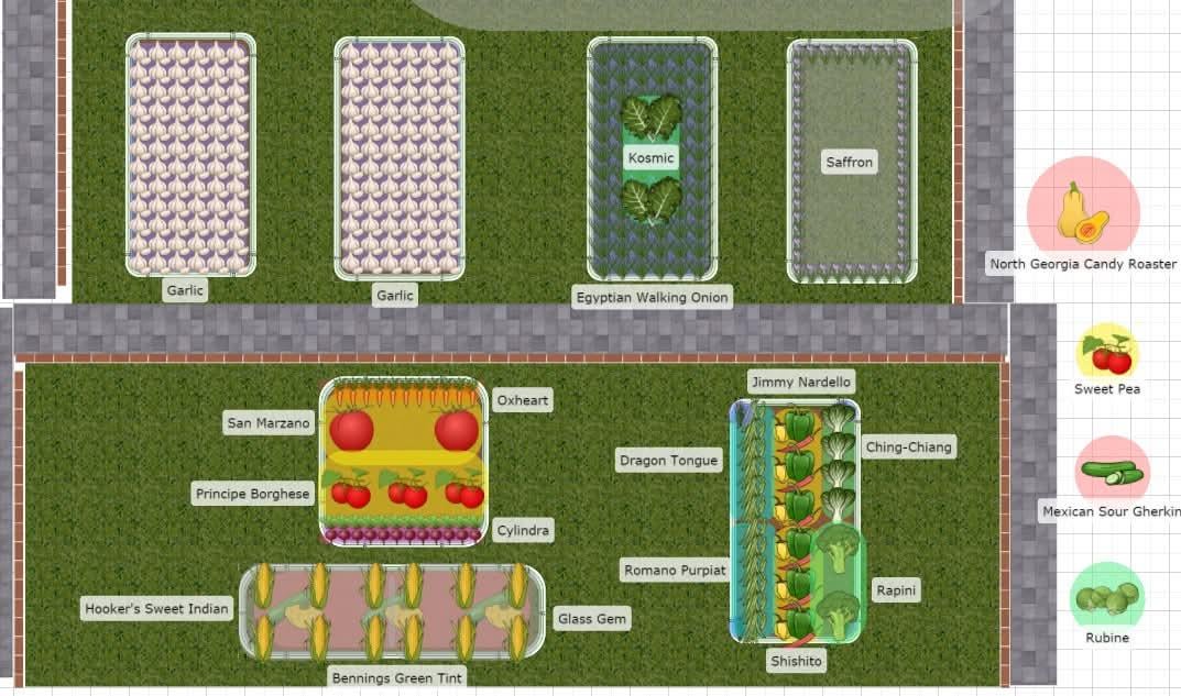 1) Die beiden Knoblauchbeete sind seit der Pflanzung im Oktober bereits voll. Einer ist Hardneck und einer ist Softneck; Wir planen die Ernte im Juni/Juli, daher glaube ich nicht, dass wir Zeit haben würden, noch etwas anzupflanzen, bevor wir den Knoblauch Ende Oktober neu anpflanzen.