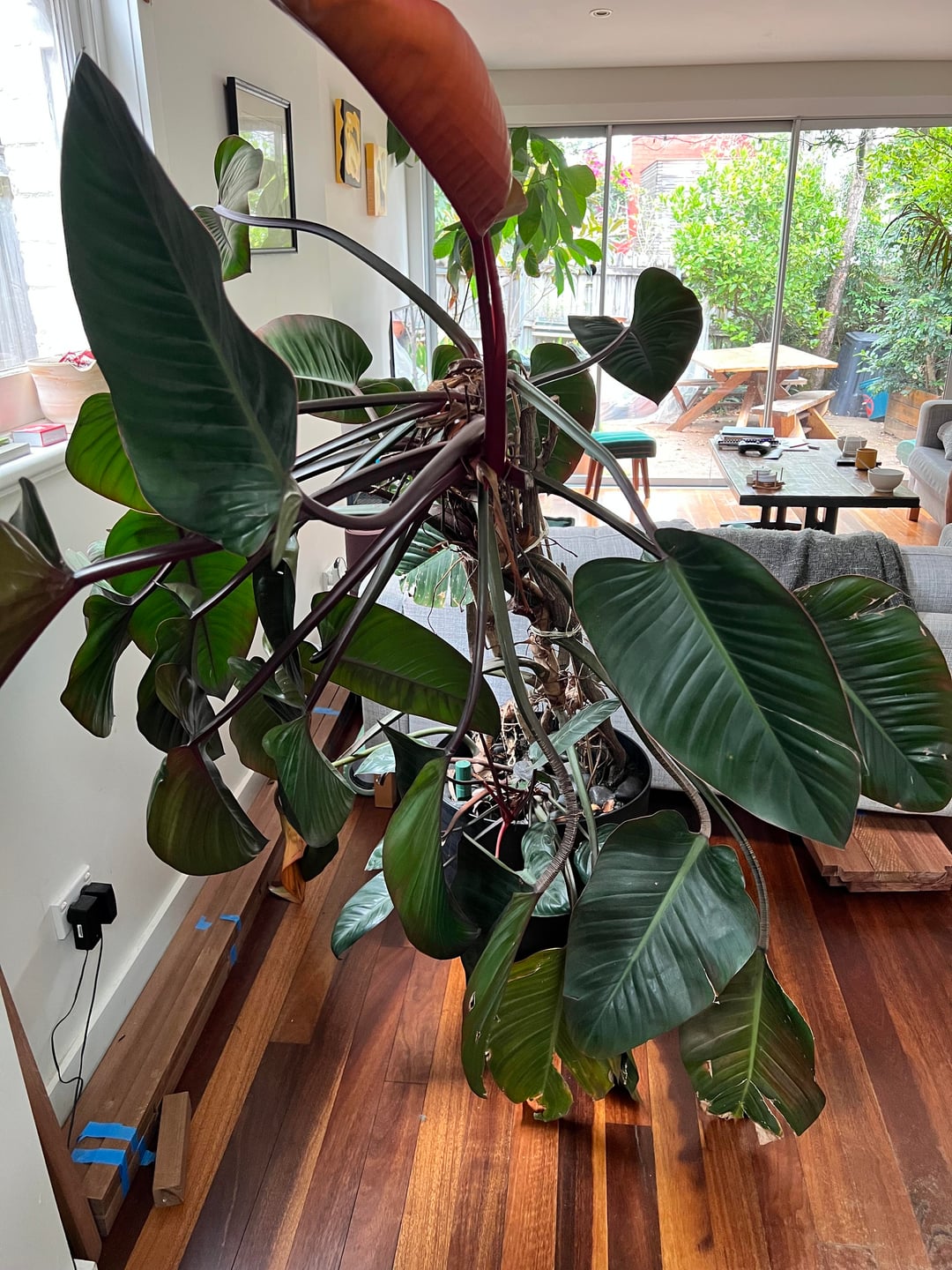 Wir haben eine riesige Pflanze, die sehr glücklich zu sein scheint, da ihr immer mehr Blätter wachsen.