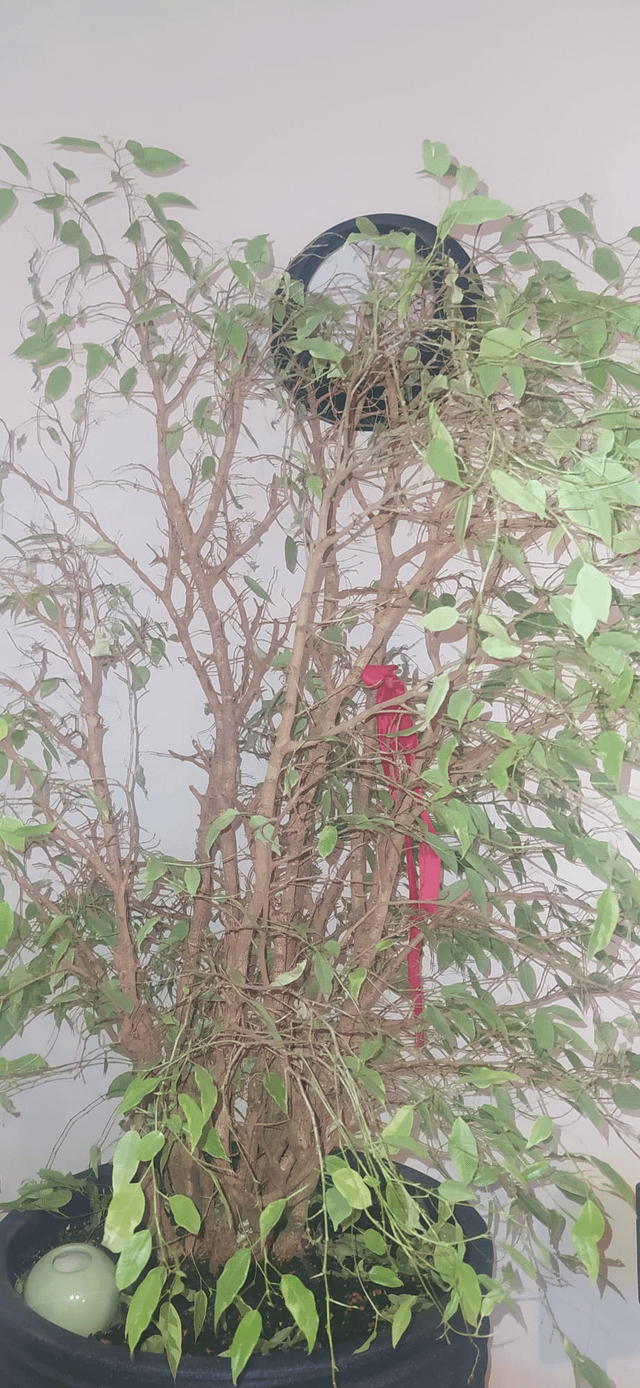 Hallo Pflanzenliebhaber! Meine Mutter hat diese sehr alte Benjamin-Feige, die jetzt seit 17 bis 19 Jahren bei uns ist. Sie sind vor drei Jahren in eine Wohnung gezogen, die direkt an einem Fluss lag. Das Wohnzimmer hatte viel natürliches Licht und eine hohe Luftfeuchtigkeit, in der diese Pflanze hervorragend gedieh und ihre Größe praktisch verdoppelte