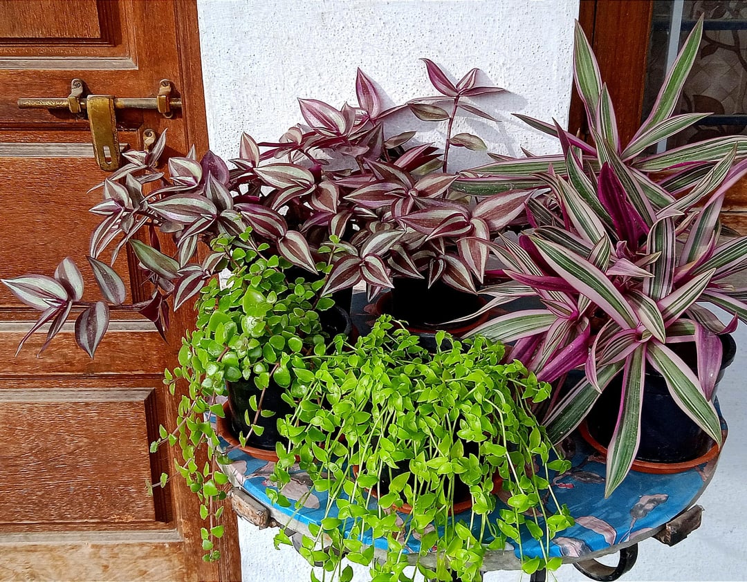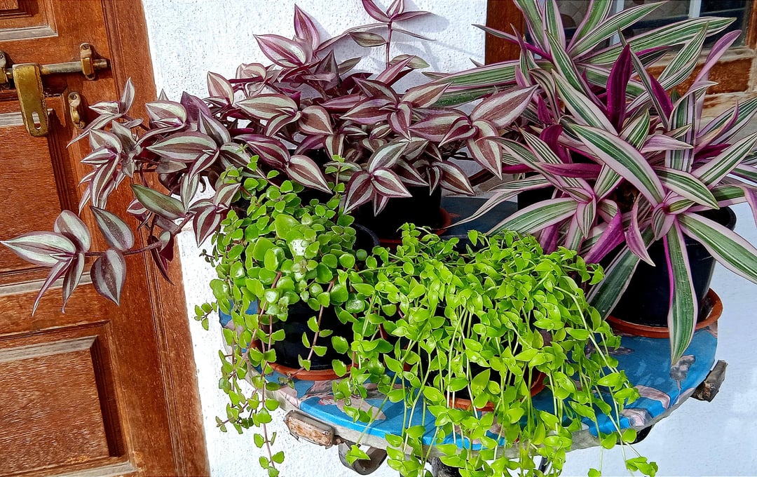 Eine Mischung aus Tradescantia Zebrina, Tangled Heart, Turtle Vine und Variegated Boat Lily ๐ฟ๐๐๐ Von: DearFloraAndFoliage