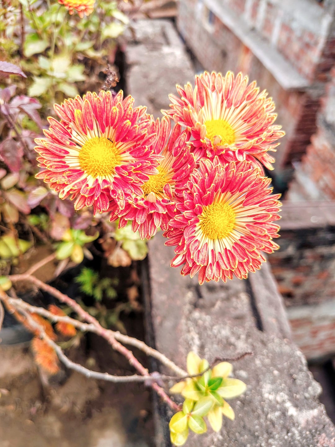 Endlich blühten meine Balkonchrysanthemen! Ich habe sie gepflegt, seit sie nur winzige Sprossen waren. Von: stuckin404