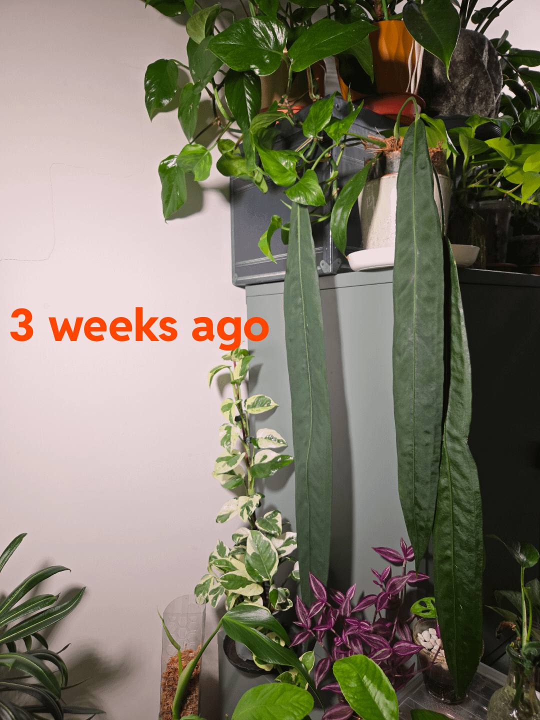 Gleichzeitig ist auch ein neues Blatt entstanden, und auch dieses wächst prächtig. Swipe für das Bild von vor drei Wochen.