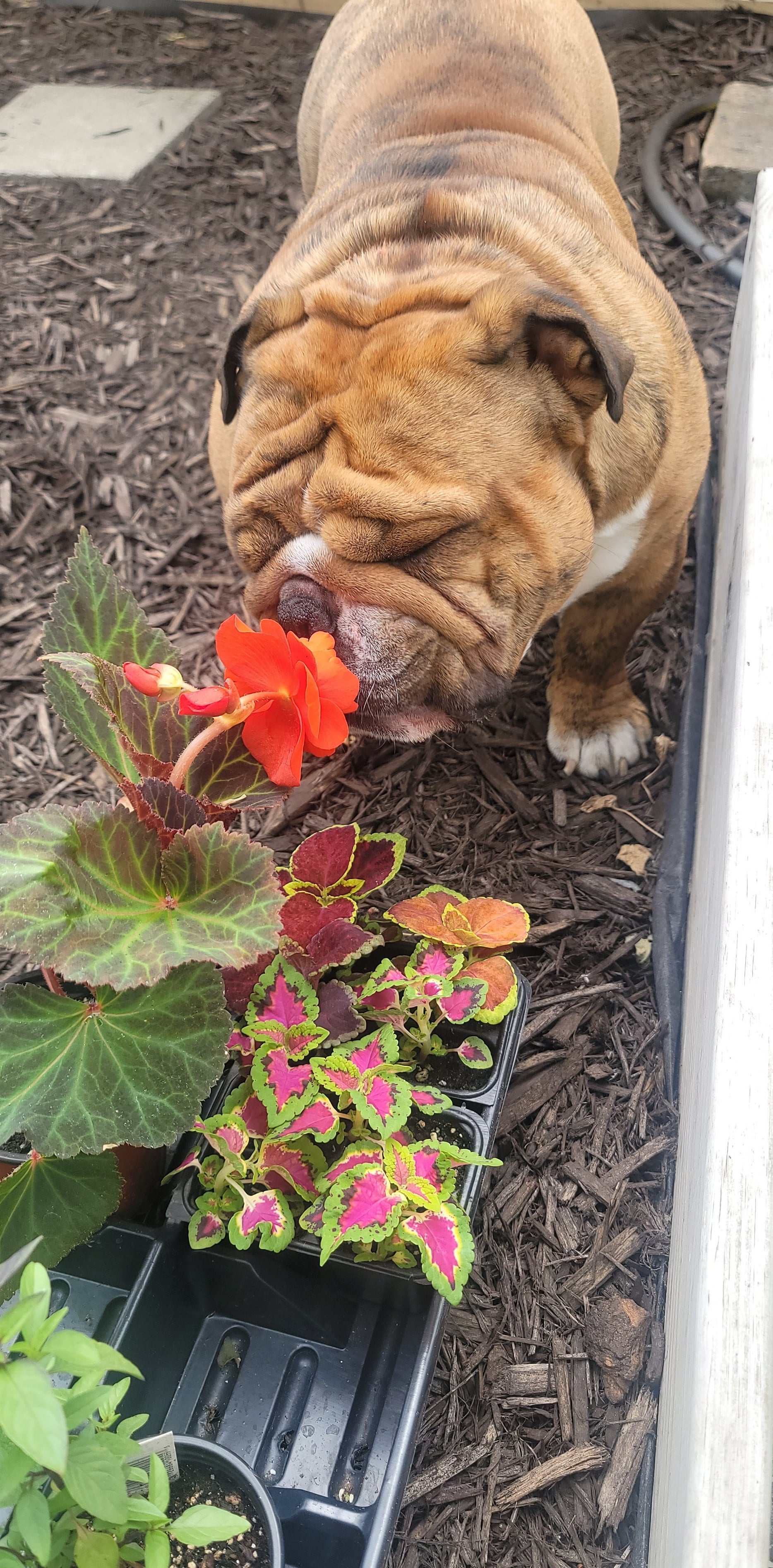 Er riecht gerne an allen Blumen, bevor sie hineingehen