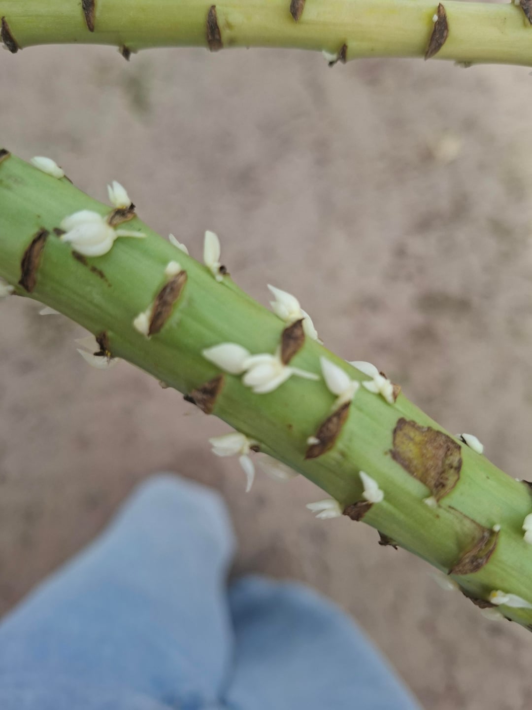 Mein Freund hat mir kurz vor Weihnachten einen Strauß Weihnachtslilien geschenkt, ich habe sie bis heute in einer Vase gelassen, weil ich faul bin. Die Blüten sind vor einiger Zeit abgestorben, aber ich wollte sie heute wegwerfen und bemerkte, dass sie an den Stielen wuchsen. Weiß jemand, was das ist? Wurzeln oder sprießen weitere Blüten? Irgendeine Krankheit? Ich habe versucht, das Bild dieser App und Google Lens zu verwenden, aber sie können nicht erkennen, von welcher Pflanze die Stängel stammen, also nützt es nichts.