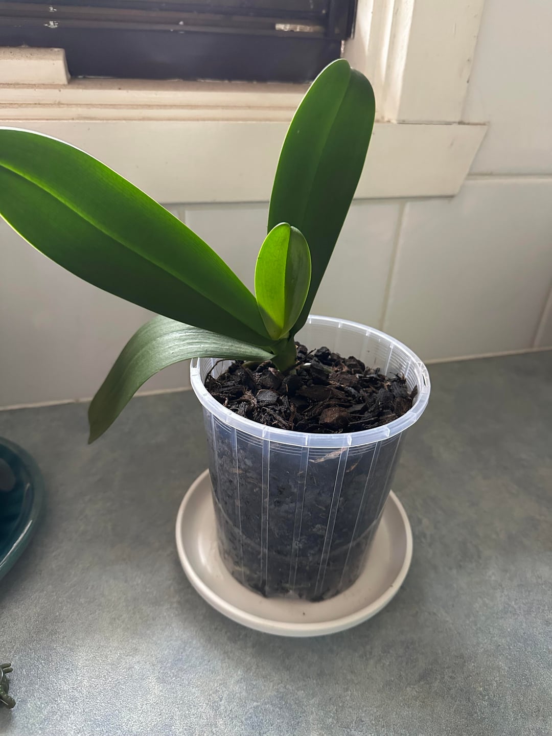 Habe eine Premium-Orchideen-Blumenerde, einen durchsichtigen Topf mit Drainage und einen größeren Topf verwendet. Ich behalte sie vorerst hier, um sie zu überwachen, und führe sie auf den richtigen Weg zum Wachsen! Bei Bedarf kaufe ich etwas Torfmoos, je nachdem, wie es ihr geht. Außerdem wurden die Einsätze und Clips aus den Ratschlägen der Kommentare hier entfernt 😅