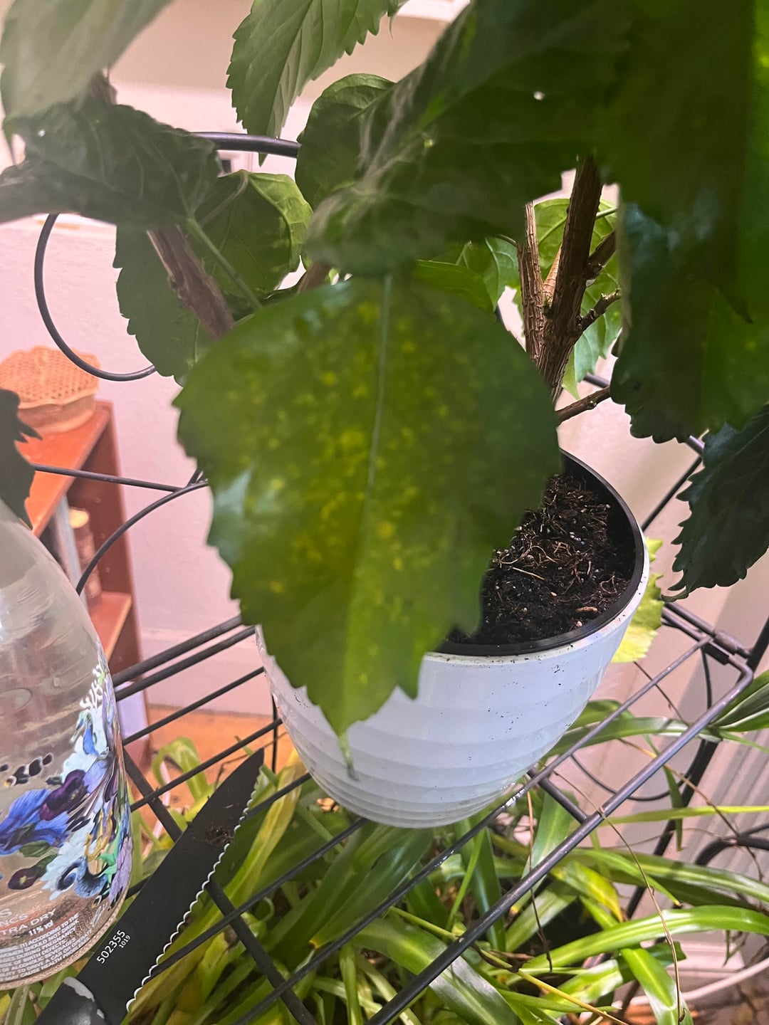 Helfen! Meine Hibiskuspflanze vergilbt täglich. Es steht im Topf und steht unter einer Sonnenlichtlampe. Ich habe es mit einem Schlauch abgespritzt, die Blätter abgewischt, Neemöl verwendet und es einmal mit Düngemitteln versucht. Wenn ich meine Wachstumslampe ausschalte oder ich morgens gelbe Blätter habe, sprießen junge Blätter blassgrün?