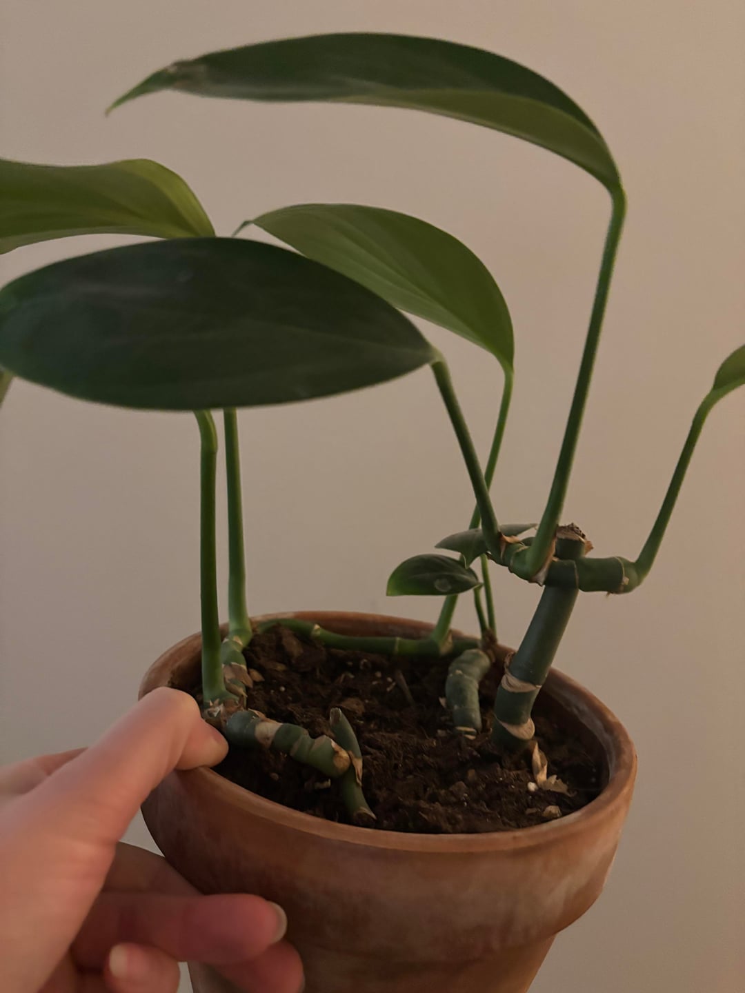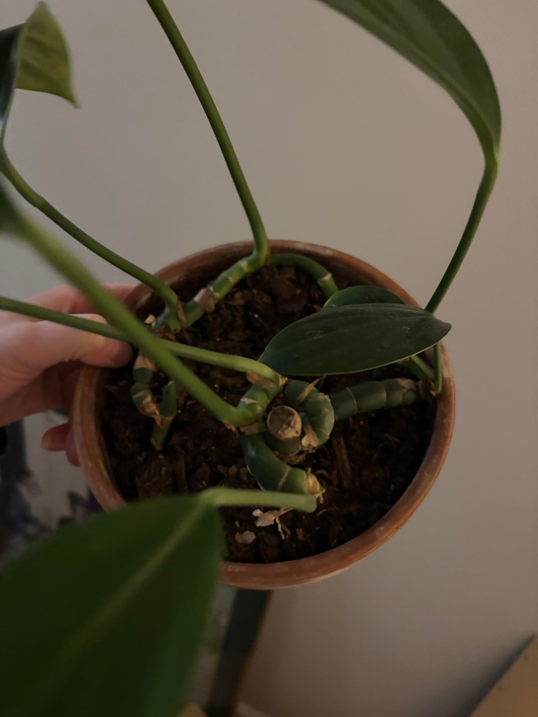 Dieses Ding wird so seltsam! Hat das überhaupt wachsende Augen? Warum wächst es von der Seite des Stängels?! Wie kommt es, dass der Stiel so eng gewellt ist?! lol Wie kann ich das überhaupt erweitern/neu starten? 😂