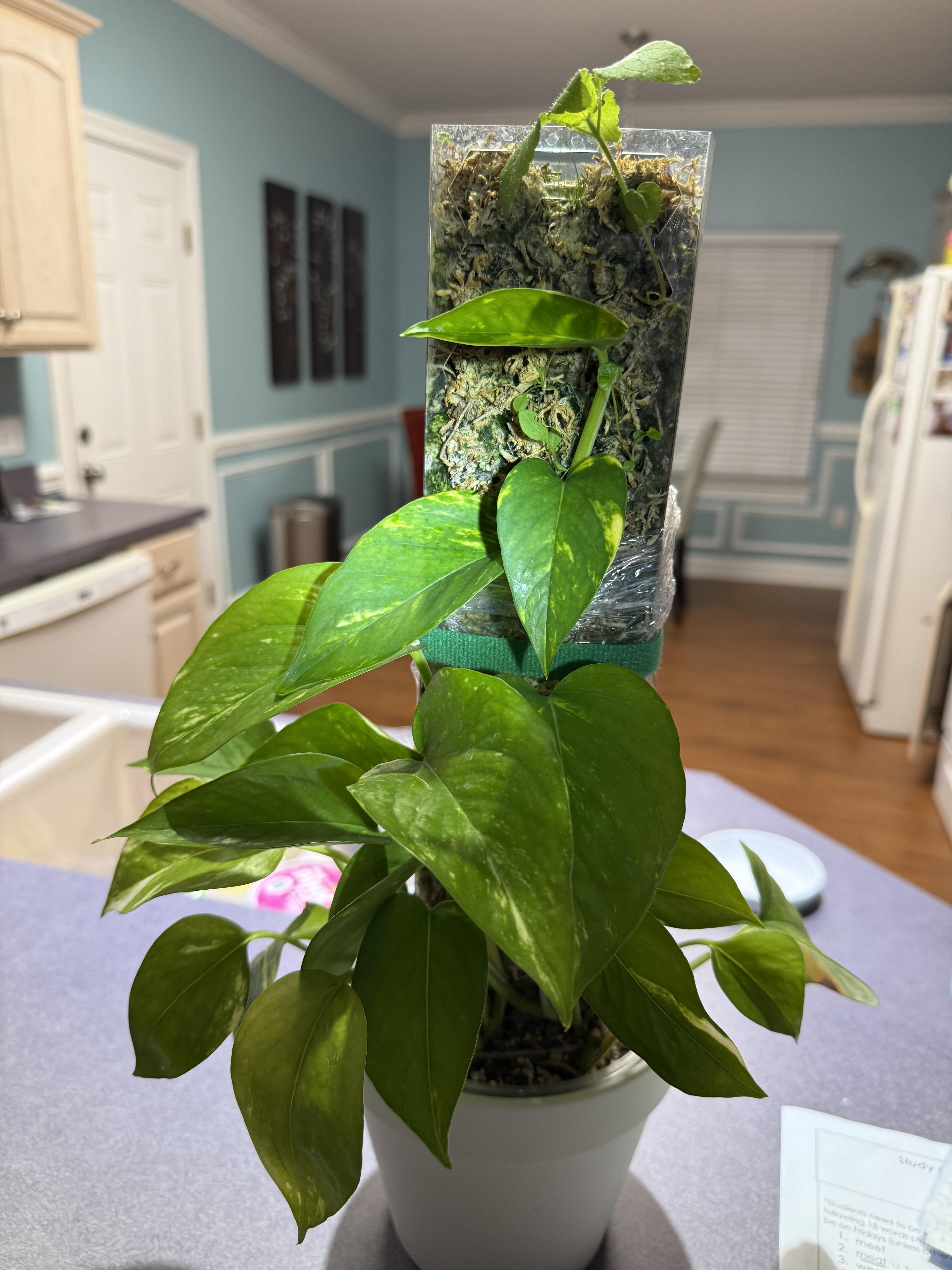 Hawaiianische Pothos kommen am Moospfahl nicht zurecht