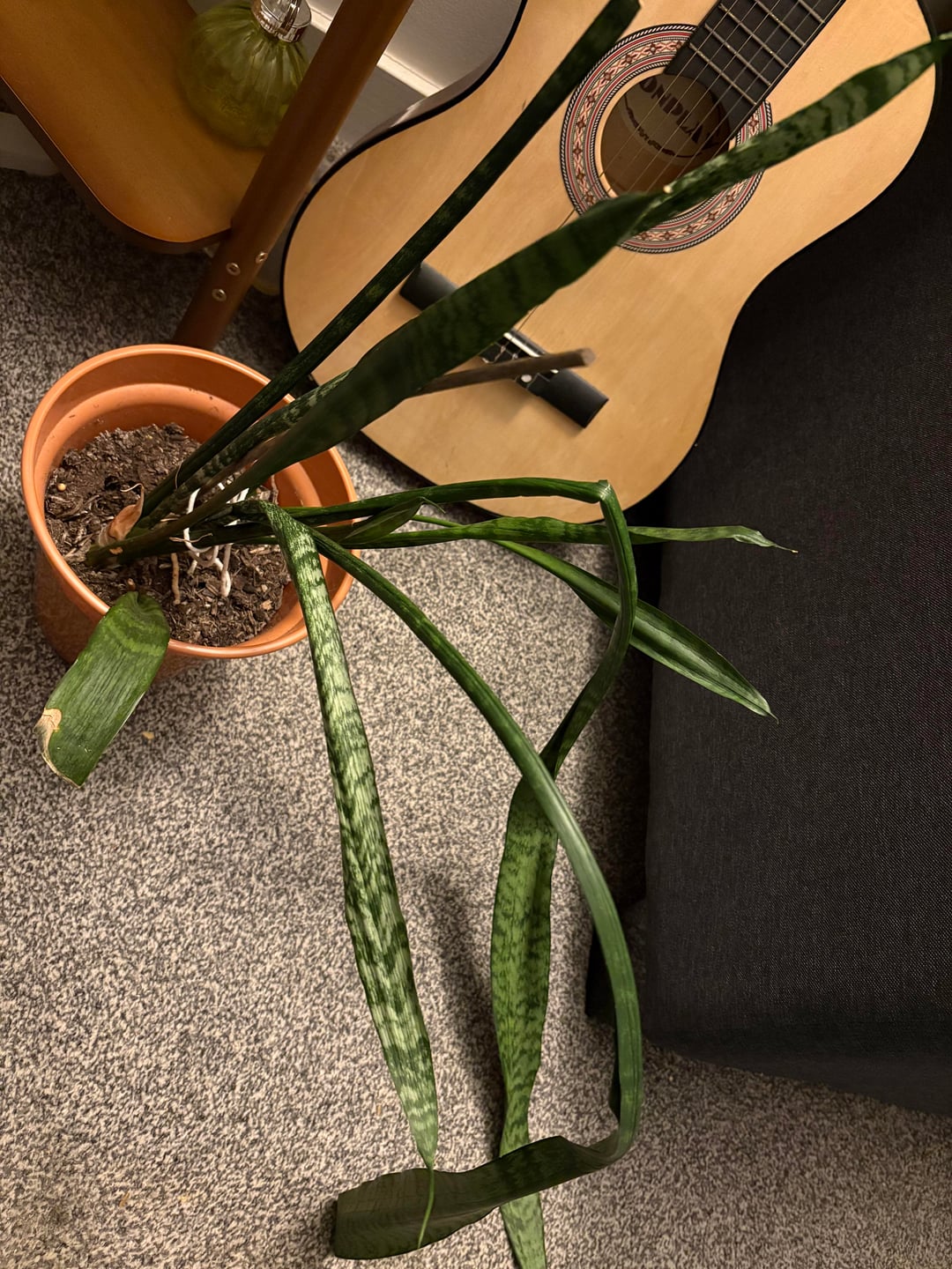 Diese Pflanze blieb in unserem Gemeinschaftsbereich zurück und ich war entschlossen, sie zu retten. Der Boden ist sehr trocken, aber was ist das und wie kann ich sie wieder gesund pflegen? Ich dachte, es sähe aus wie eine Art Schlangenpflanze, bin mir aber nicht sicher. Helfen! Was und wie soll ich sie gießen? Muss sie umgetopft werden? Was ist der beste Ort, um sie lichttechnisch unterzubringen?