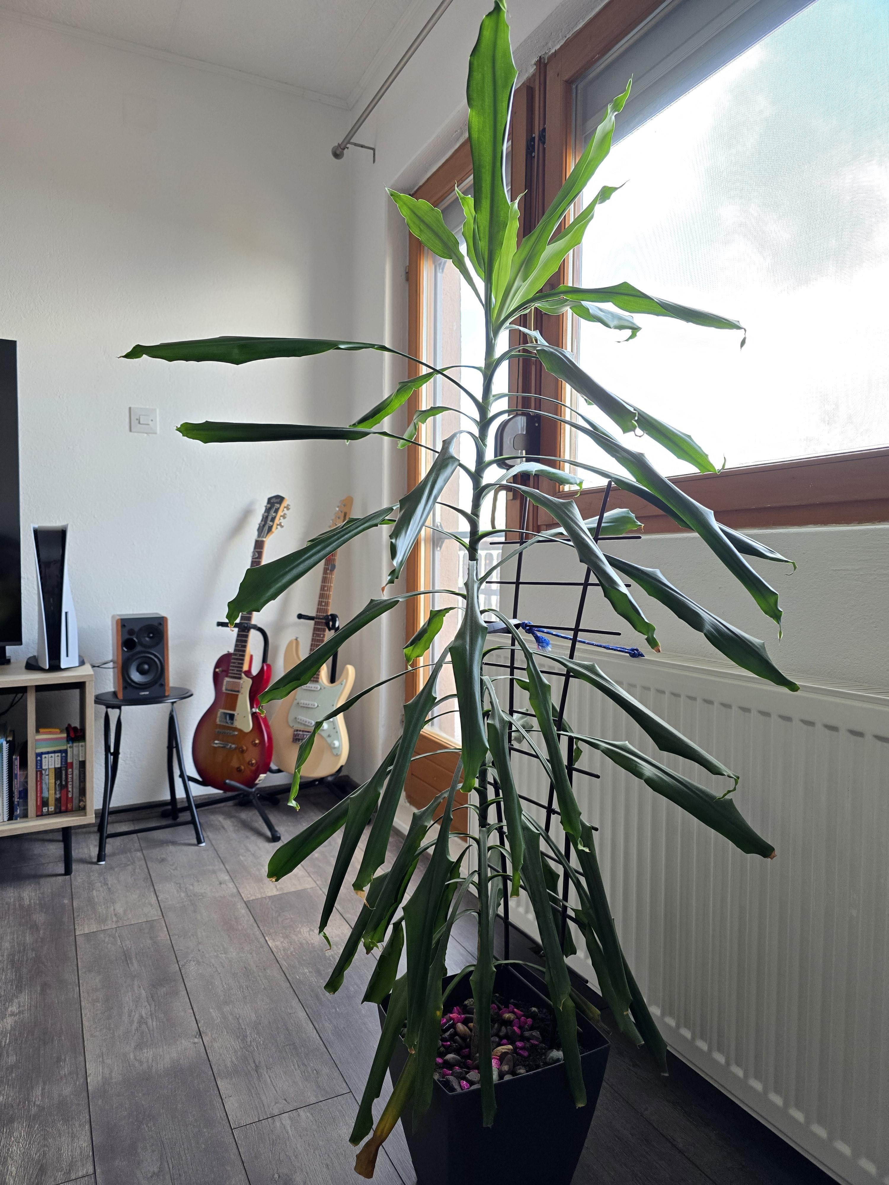 Lernen Sie Jerry, die Zimmerpflanze, kennen. Ich habe ihn von einem Freund bekommen, als er noch ein Baby war, vor 6-7 Jahren. Ich bin kein großer Fan von Pflanzen, aber ich liebe dieses Exemplar und habe mich seitdem um es gekümmert und ihm dabei den Namen Jerry gegeben. Ich habe keine Ahnung, was für eine Pflanze Jerry ist. Als ich ihn empfing, sagte mir mein Freund, es sei ein Baum des Lebens. Jerry hat viel Licht, ich gieße ihn normalerweise alle 10 Tage und habe ihn vor ein paar Monaten umgetopft.