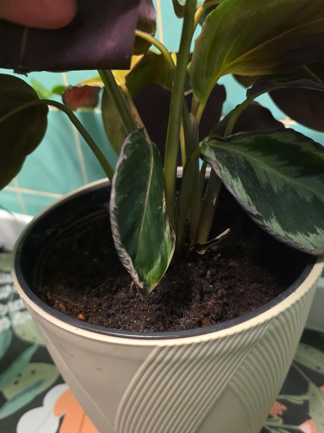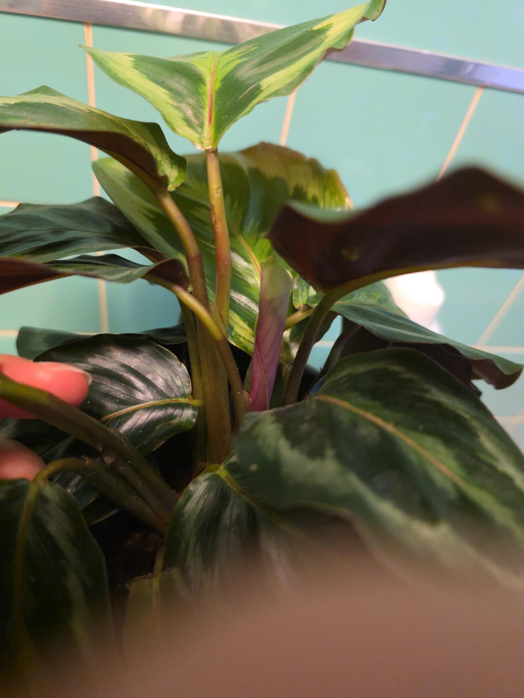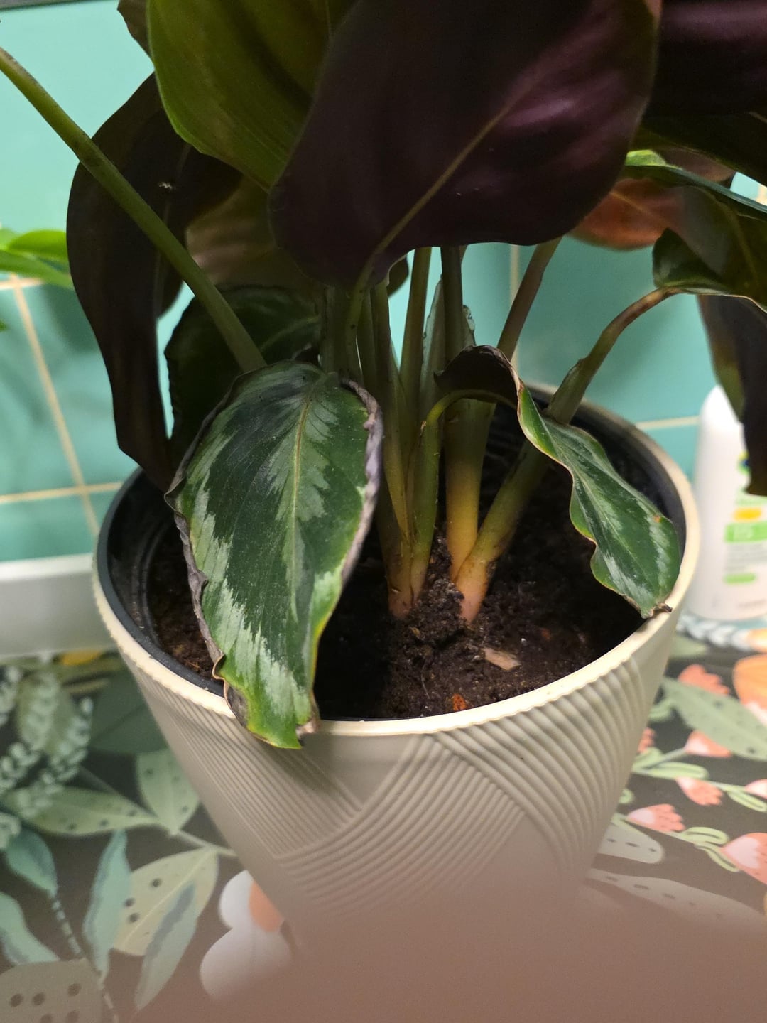 Könnte dies ein Problem mit der Wasserqualität sein? Ich habe diese Pflanze seit Monaten in meinem Badezimmer in einem nach Süden ausgerichteten Fenster auf einem Regal stehen. Sie schien gut zu gedeihen und hatte genau in der Mitte ein wunderschönes Blatt hervorgebracht, aber ich habe sie in ein selbstbewässerndes Pflanzgefäß gesetzt und vermute, dass das vielleicht das Problem ist. Ich habe nur Leitungswasser verwendet, ich weiß, dass ich gelesen habe, dass Calathea wählerisch sein kann, aber ich habe das schon früher verwendet und die toten Blätter sind eine neue Entwicklung, also dachte ich nicht, dass es am Wasser liegt. Vielleicht sollte ich sie wieder in einen normalen Topf geben? Könnte es sein, dass es zu feucht bleibt?