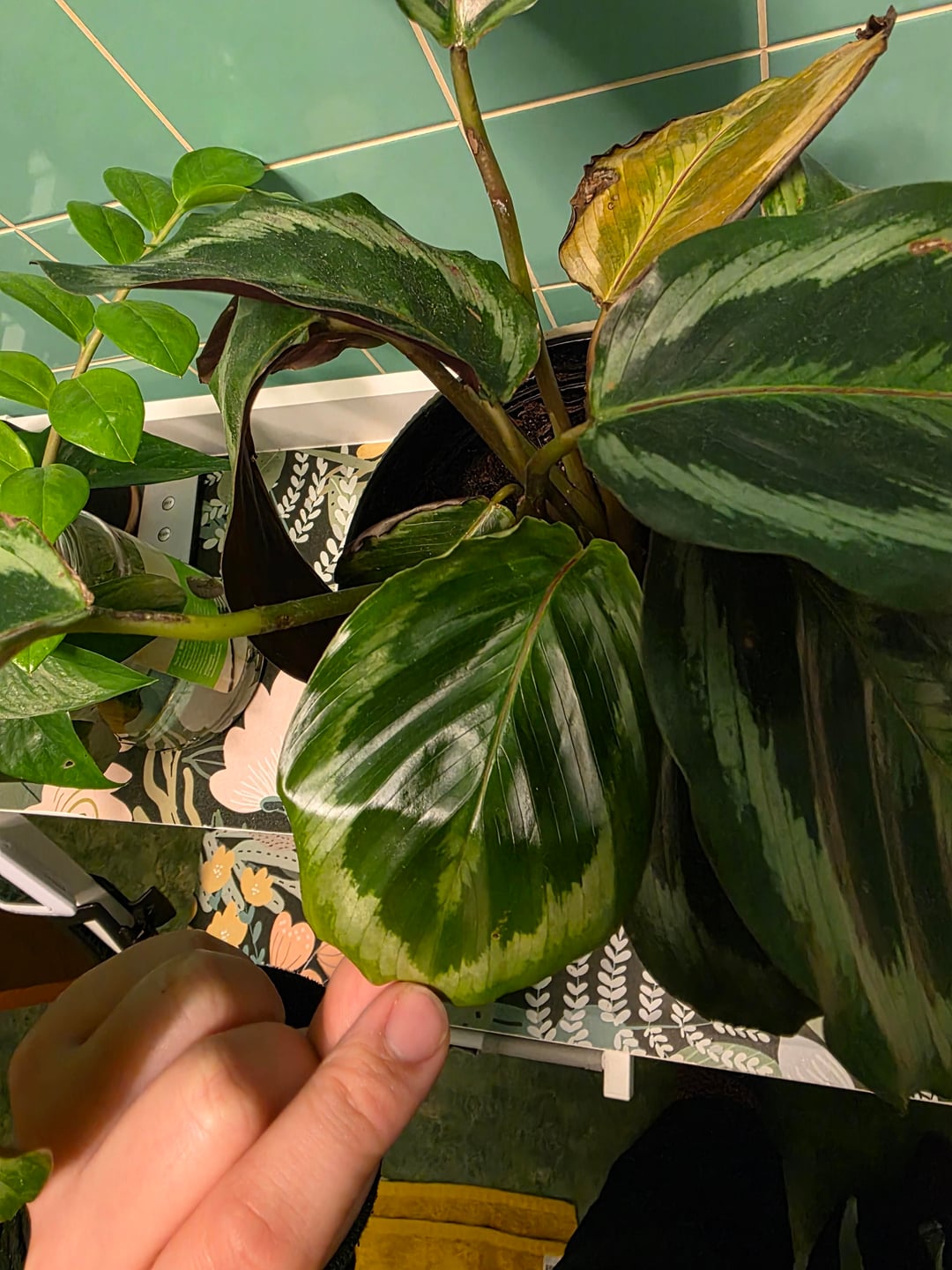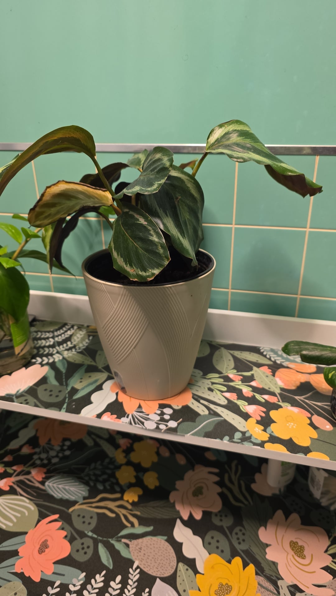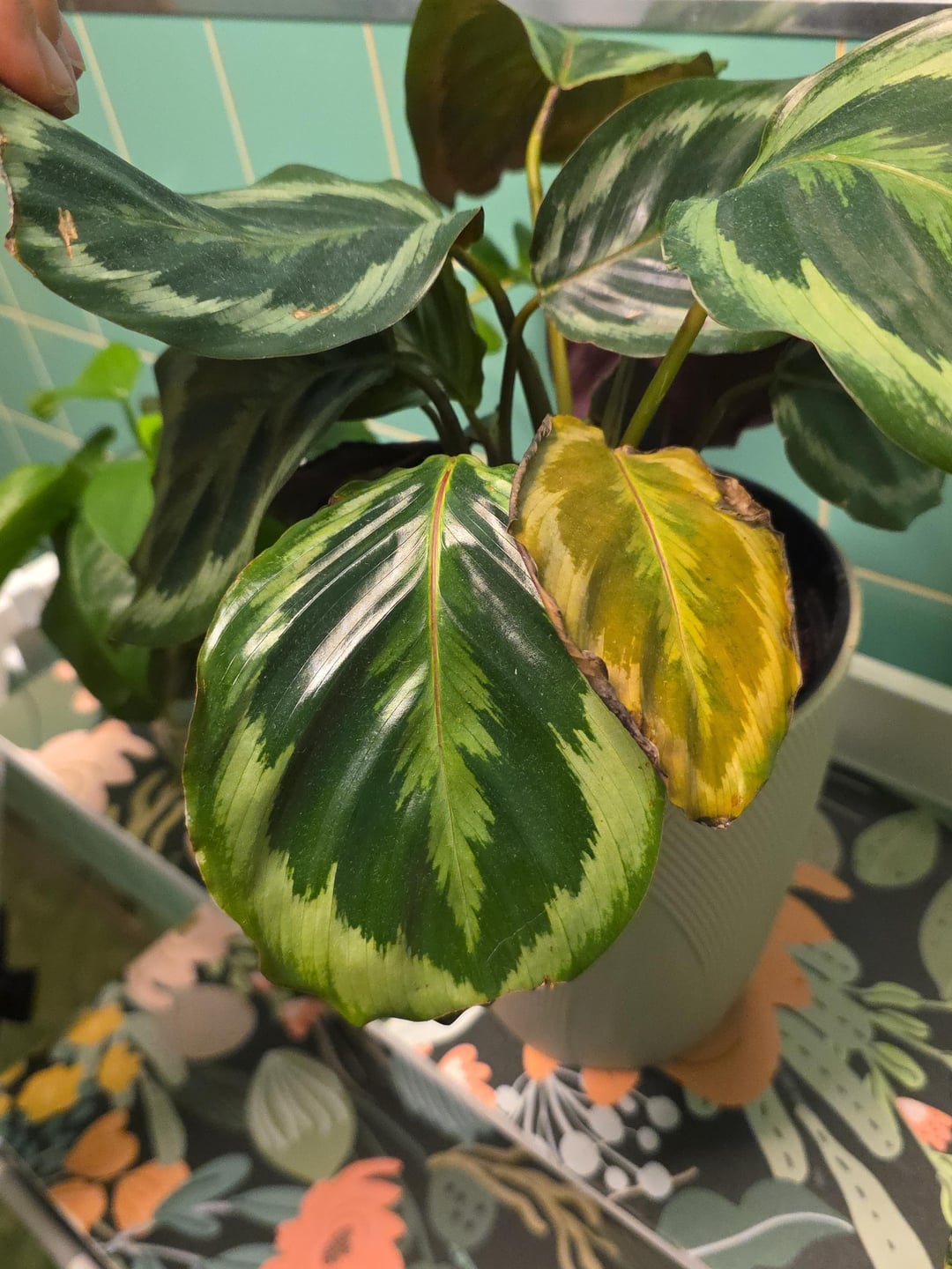 Könnte dies ein Problem mit der Wasserqualität sein? Ich habe diese Pflanze seit Monaten in meinem Badezimmer in einem nach Süden ausgerichteten Fenster auf einem Regal stehen. Sie schien gut zu gedeihen und hatte genau in der Mitte ein wunderschönes Blatt hervorgebracht, aber ich habe sie in ein selbstbewässerndes Pflanzgefäß gesetzt und vermute, dass das vielleicht das Problem ist. Ich habe nur Leitungswasser verwendet, ich weiß, dass ich gelesen habe, dass Calathea wählerisch sein kann, aber ich habe das schon früher verwendet und die toten Blätter sind eine neue Entwicklung, also dachte ich nicht, dass es am Wasser liegt. Vielleicht sollte ich sie wieder in einen normalen Topf geben? Könnte es sein, dass es zu feucht bleibt?