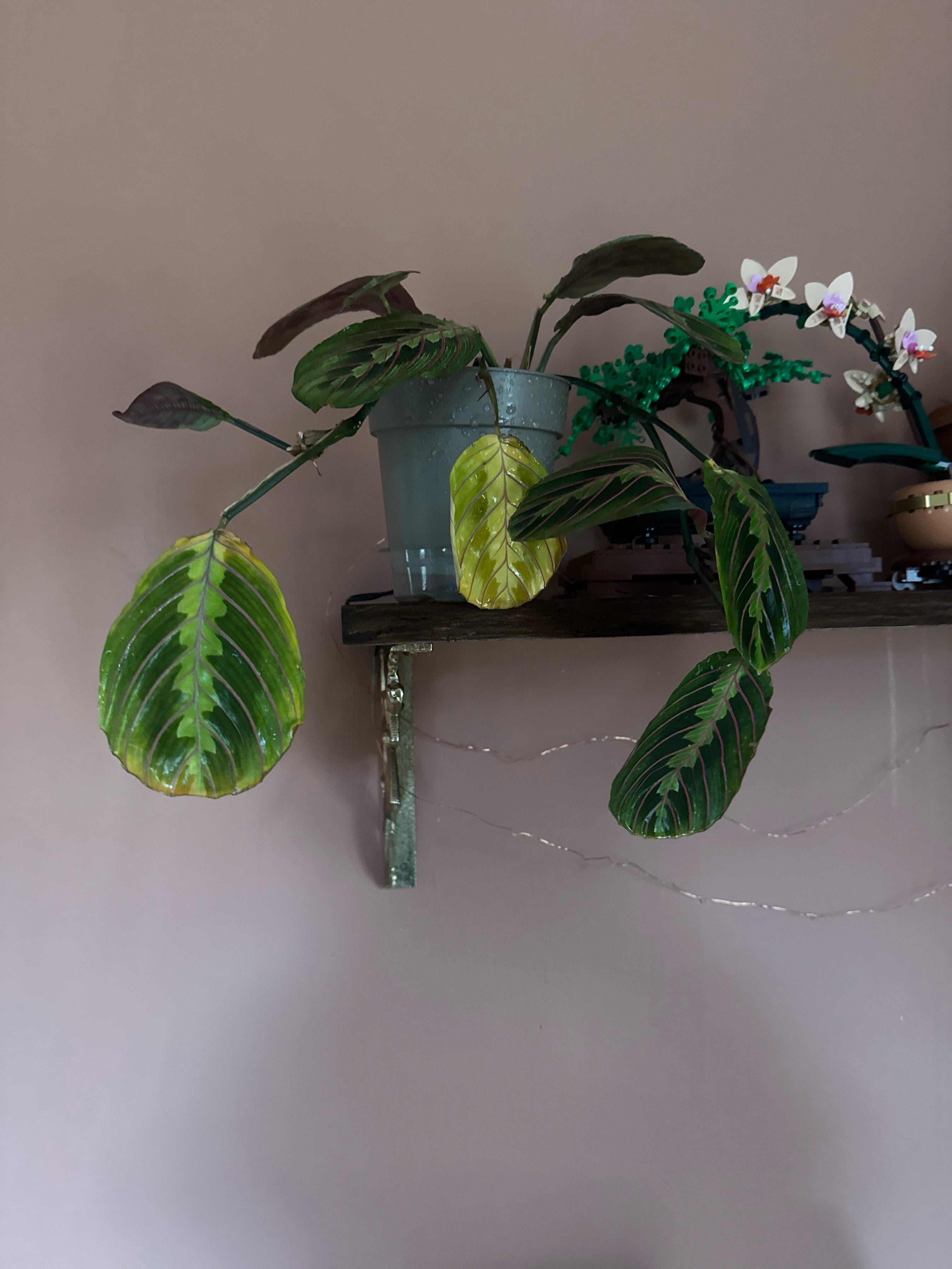 Hallo! Ich habe vor Kurzem eine Maranta-Pflanze bekommen und mir ist aufgefallen, dass die Blätter gelb werden und die Muster stumpf sind. Ich brauche etwas Hilfe. Vielleicht stelle ich es nicht ausreichend Sonnenlicht aus? Es ist nicht in der Nähe eines Fensters – ist das das Problem? Danke!