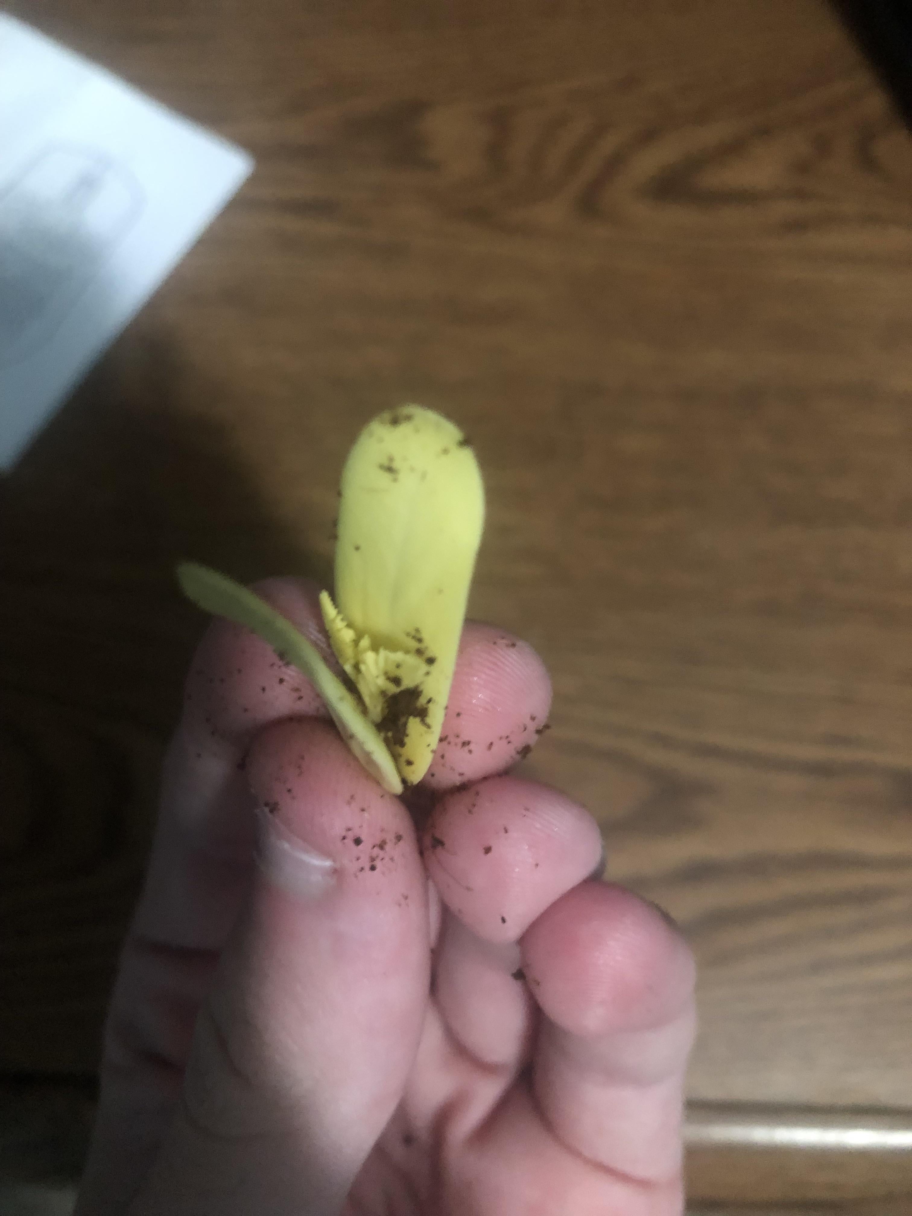 Derzeit wächst ein Flammenbaum-Bonsai (Delonix regia) (wächst seit etwa 2 Wochen) und dieser befand sich unter der Erde, war nicht mit der Pflanze verbunden, berührte aber lose den Samen. Was ist das und sollte ich mir Sorgen um die Pflanze machen?