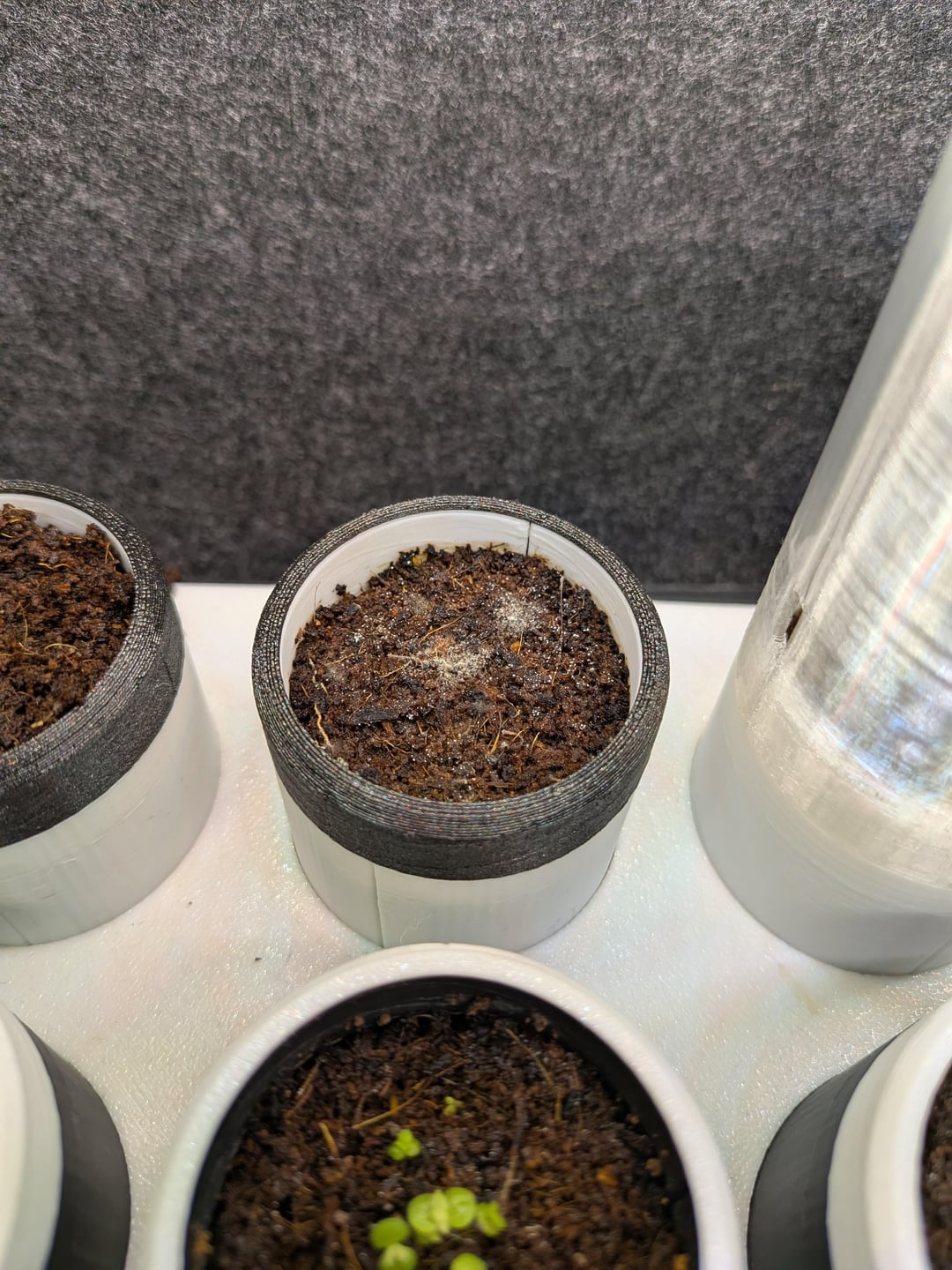 Also habe ich gerade angefangen, ein paar Pflanzen zu züchten. Ich habe eine Sukkulentenmischung in den vorderen 4 Töpfen, 2 hinten rechts sind Venusfliegenfallen und hinten links kann ich mich nicht erinnern, dass es sich um eine andere Sukkulentenart handelt. Der große Einzeltopf ist eine Erdbeerpflanze. Die Pflanzen sind bisher ein paar Wochen alt und meine Frage betrifft das weiße Zeug/die weißen Flecken auf dem Boden, von dem ich annehme, dass es sich um Schimmel handelt. Was könnte die Ursache dafür sein und wie kann man es beseitigen oder verhindern, dass es erneut auftritt? Ich verwende für alle destilliertes Wasser, außer für die Erdbeerpflanze verwende ich normales Wasser aus der Flasche. Habe sie in meinem Schlafzimmer unter 4 Vollspektrum-LED-Bars, ich weiß nicht die besten, aber es ist alles Platz für Geldautomaten. Die Temperatur in meinem Zimmer liegt derzeit zwischen 22 und 26 °C und die Luftfeuchtigkeit liegt bei etwa 30 bis 40 %, da hier in Großbritannien Winter ist. Irgendwelche Tipps wären toll, danke 😀
