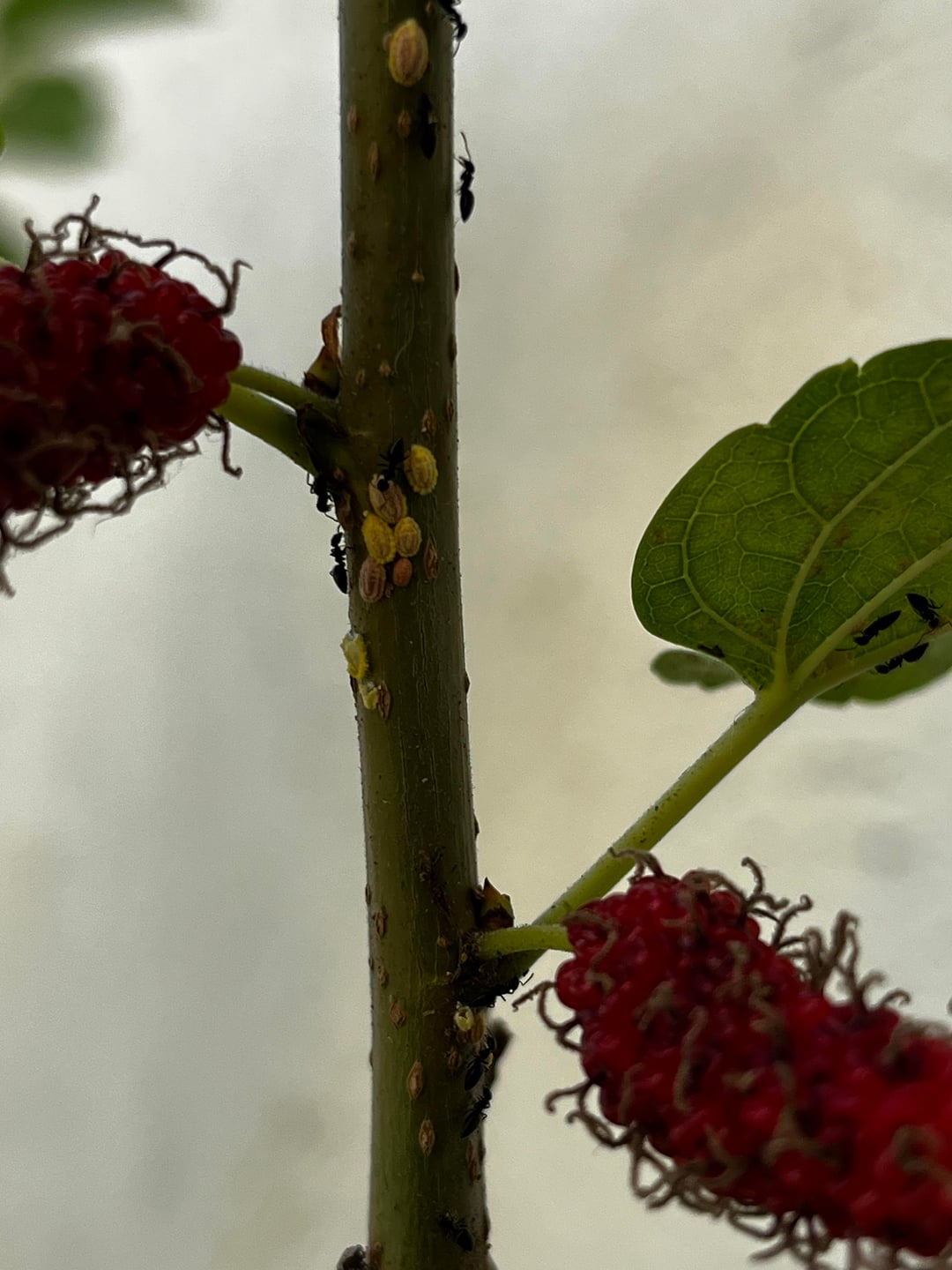 Was muss ich tun, um dieses Insekt in meinem wachsenden Maulbeerbaum loszuwerden? Außerdem gibt es viele schwarze Ameisen im Stängel und in den Blättern. Danke! Von: tentheart_123
