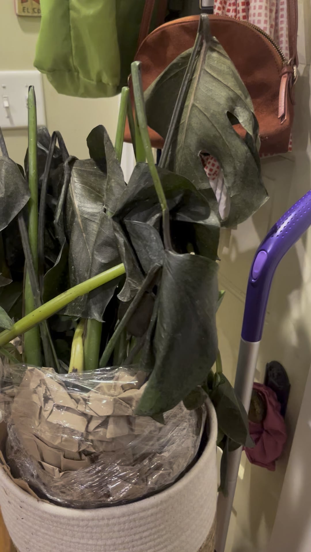 Mein Nachbar hat diese Pflanze online bestellt und sie war 9 Tage unterwegs und kam heute in diesem Zustand an. Es ist Winter hier draußen! Sie fragte, ob ich es wollte und es vielleicht retten könnte. Ich sehe ein paar gesund aussehende Blätter, die Potenzial zu haben scheinen, aber viele dunkle, beschädigte Blätter.