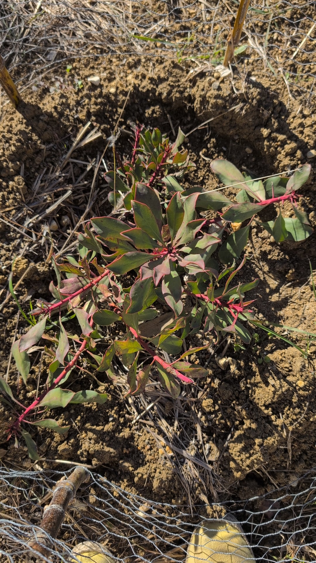 Ich dachte, dass es aufgrund seines natürlichen Geschmacks für saure, steinige Böden nicht lange halten würde. Nun ja, es hat WIRKLICH überstanden, dass es halb von Kaninchen gefressen wurde, dann 300 mm Regen über vier Tage hinweg und schließlich den einwöchigen -3°C-Frost, der direkt danach kam, OHNE EINEN EINZIGEN BLATTTROPFEN.