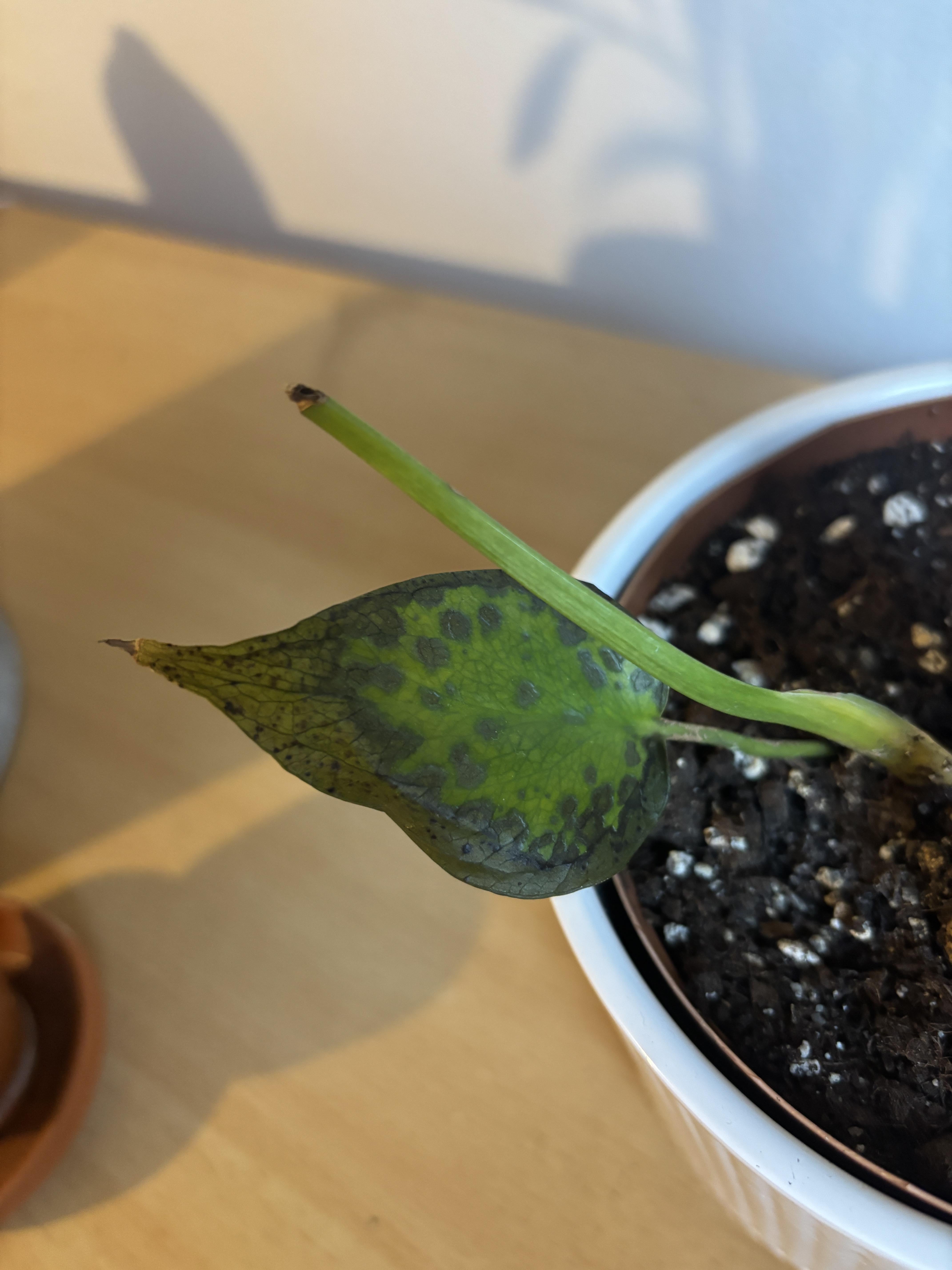 Vor einer Woche bemerkte ich, dass meine Monstera Thripse hatte. Ich habe die Blätter mit einem Spray besprüht und heute ist mir aufgefallen, dass dieser kleine Kerl schwarz wird. Könnte es eine Verätzung sein? andere Blätter sind in Ordnung. Ich habe den Fehler gemacht, das Insektizid nicht selbst zu mischen, daher hätte es etwas stärker sein können, als es hätte sein sollen. Meine anderen Pflanzen (nicht Monstera) sind in Ordnung. Muss ich mir um den Rest meiner Monstera-Pflanze Sorgen machen?