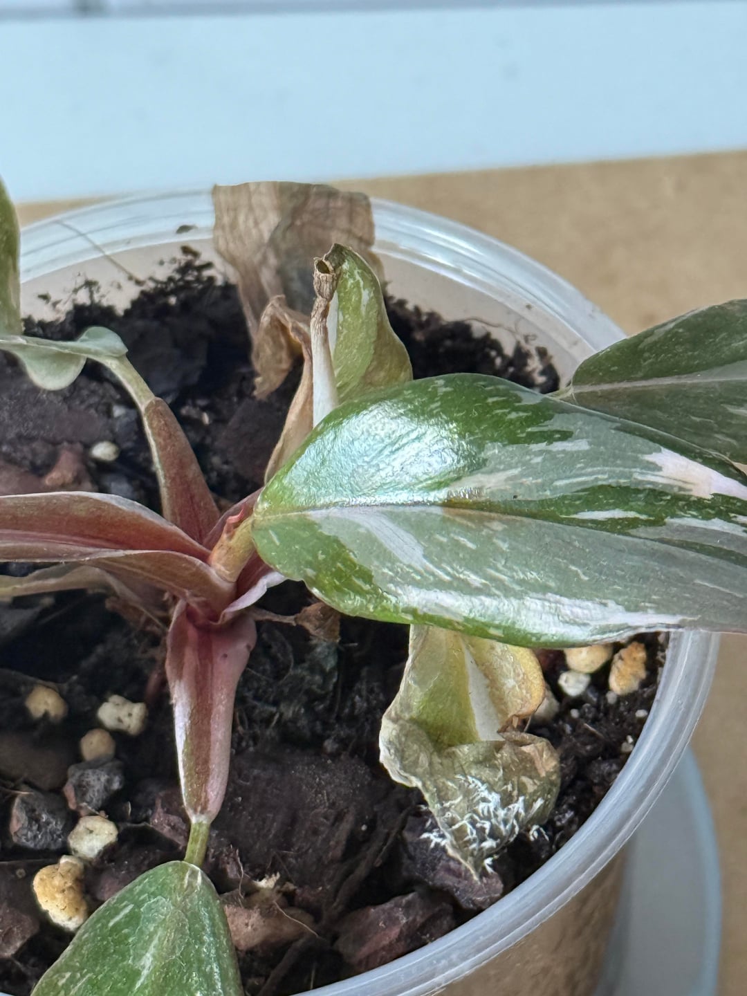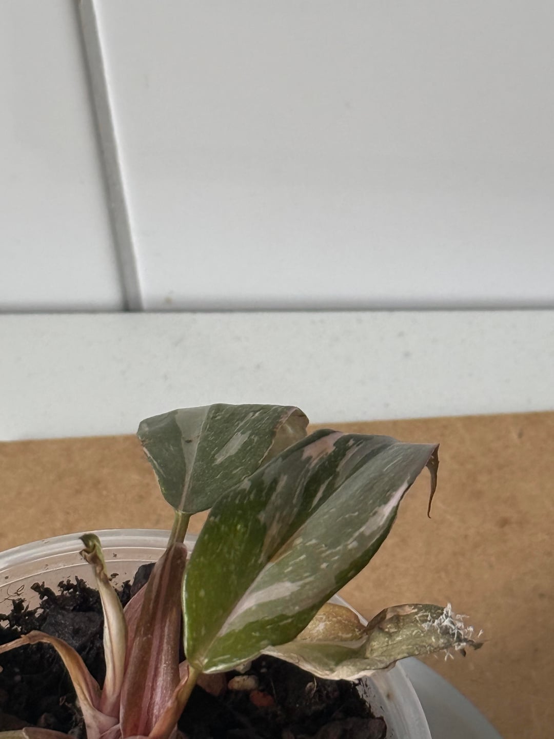 Jetzt hat ein Baby Philodendron so einen Flaum auf einem Blatt und der Rest der Pflanze sieht auch traurig aus.