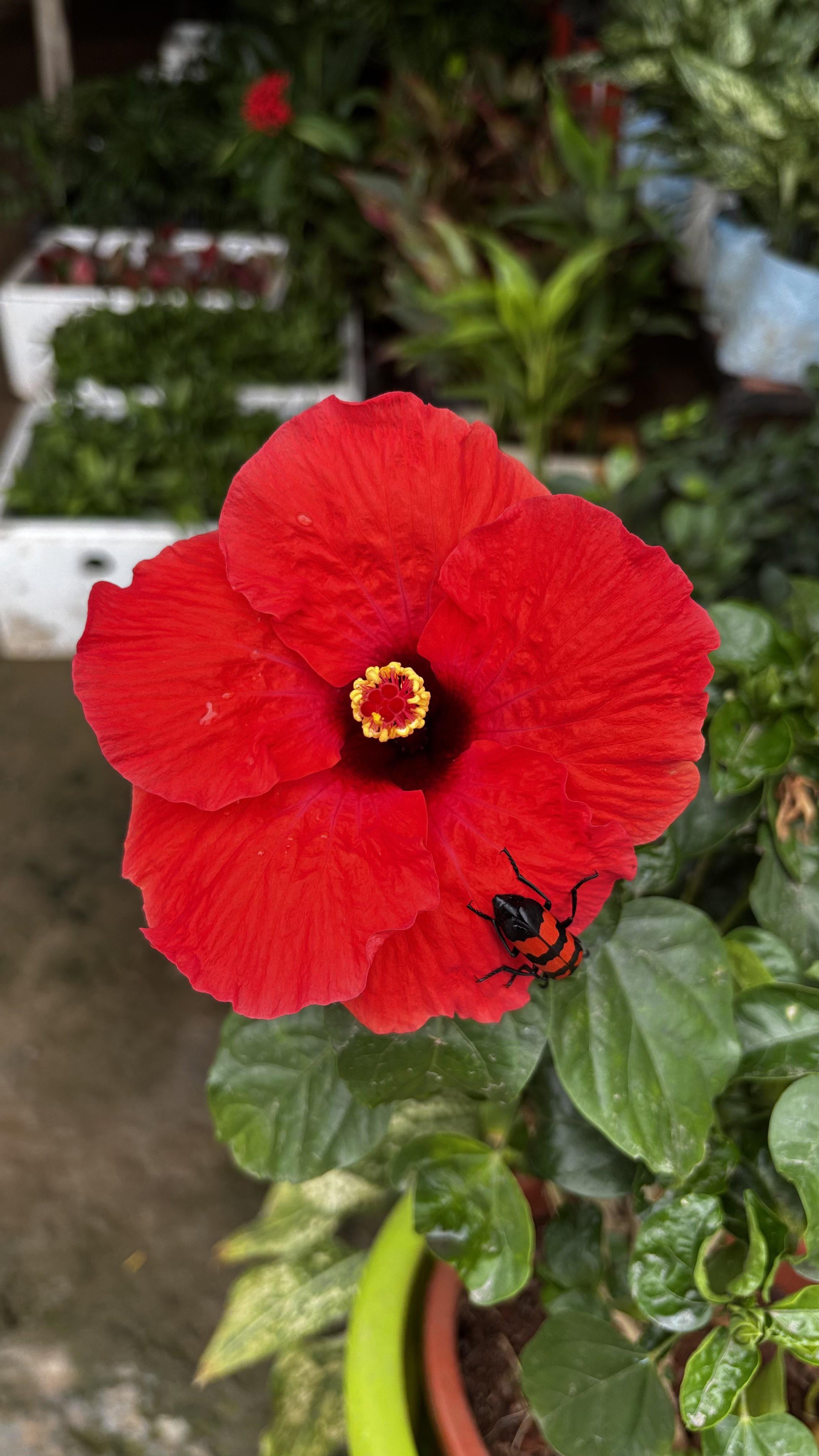 Scharlachrote Blüte, kühner kleiner Gast 🌺🐞