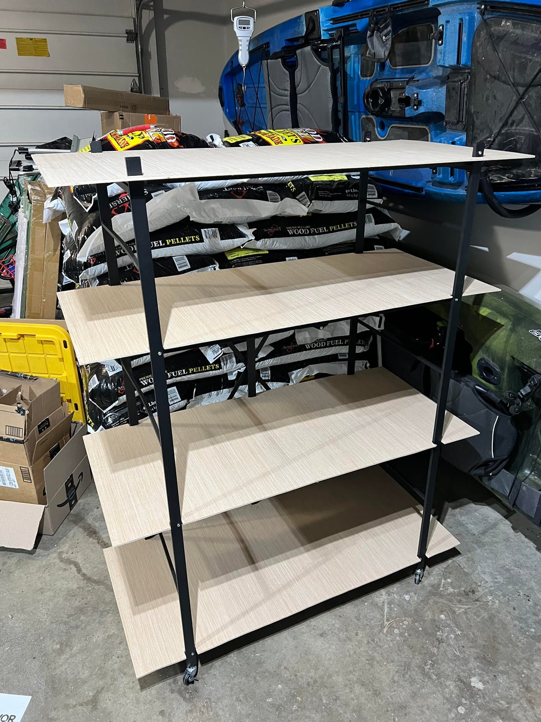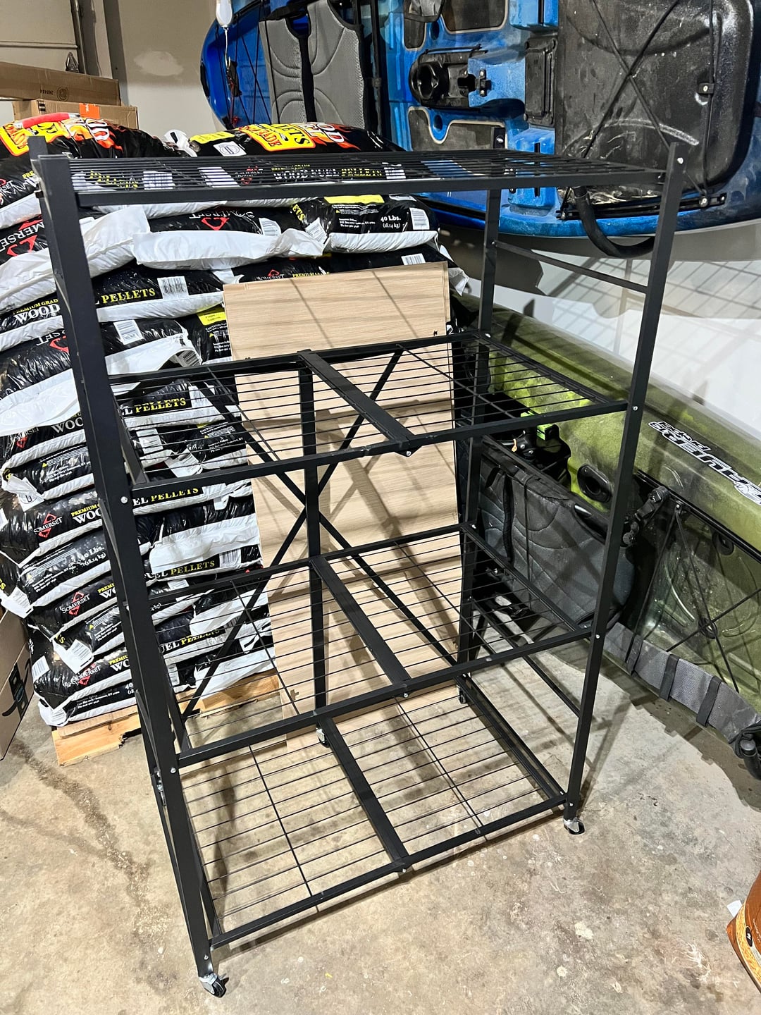 Dieses Vevor-Regal ist schön, auf Rädern, Rollen und Falten. Der Nachteil ist, dass es etwas wackelig ist. Aber ich denke, es sollte gut genug funktionieren, um leicht zu lagern und meine Pflanzen zum Aushärten zur Seite und zurück in die Garage zu rollen.