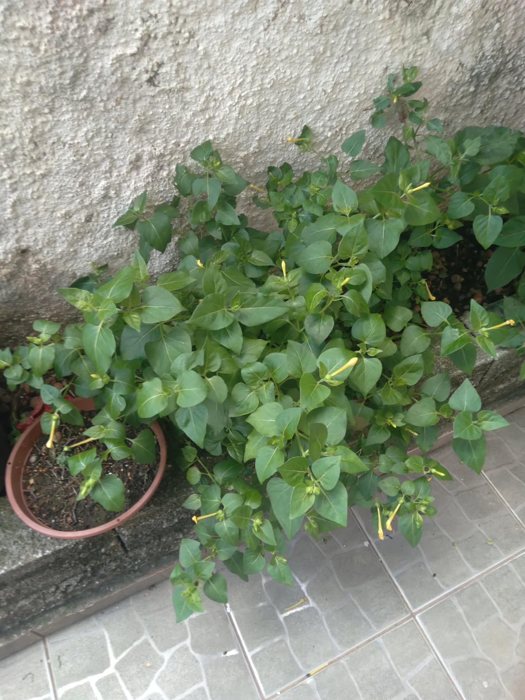 Plötzlich tauchten nächtliche Wunder in meinem Garten auf, sogar außerhalb des Hauptgartens am Toreingang. Alle diese Nachtwunder sind nach Größe sortiert, es gibt 3 gelbe Blumen und 2 rosa Blumen, aber die andere rosa Blume ist unten, und ich war faul, ein Foto zu machen, weil es dort so heiß war. Diese Pflanzen öffnen sich nur nachts und schließen sich, wenn die Sonne scheint, und wenn die Blume stirbt, entsteht eine Frucht, ein schwarzer Samen, in den man ihn pflanzen kann.
