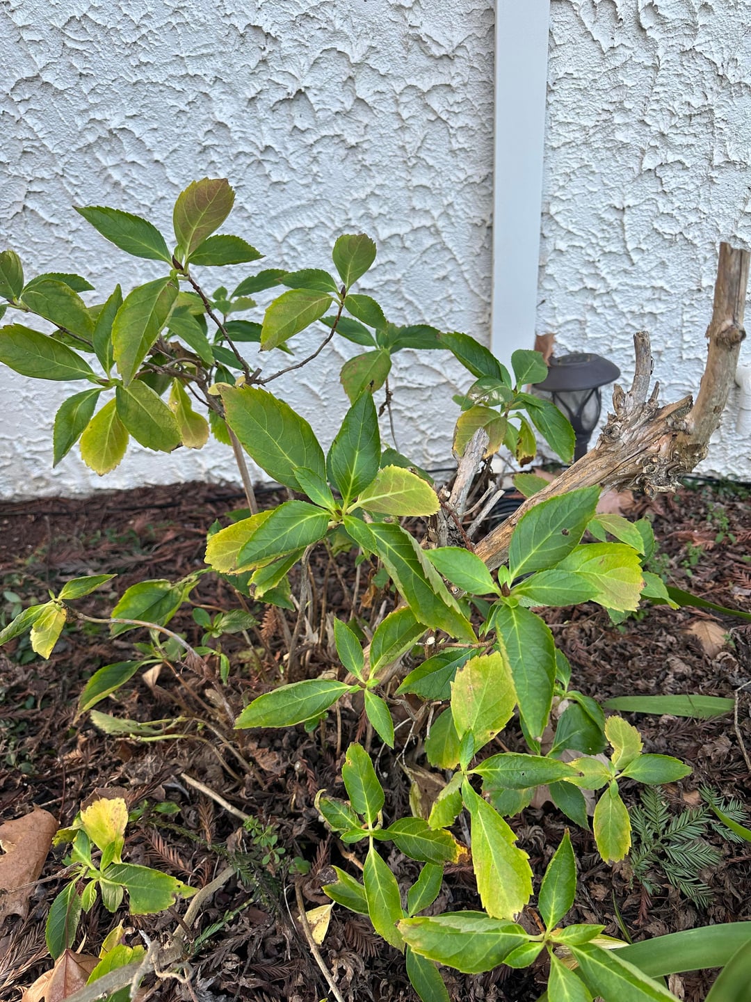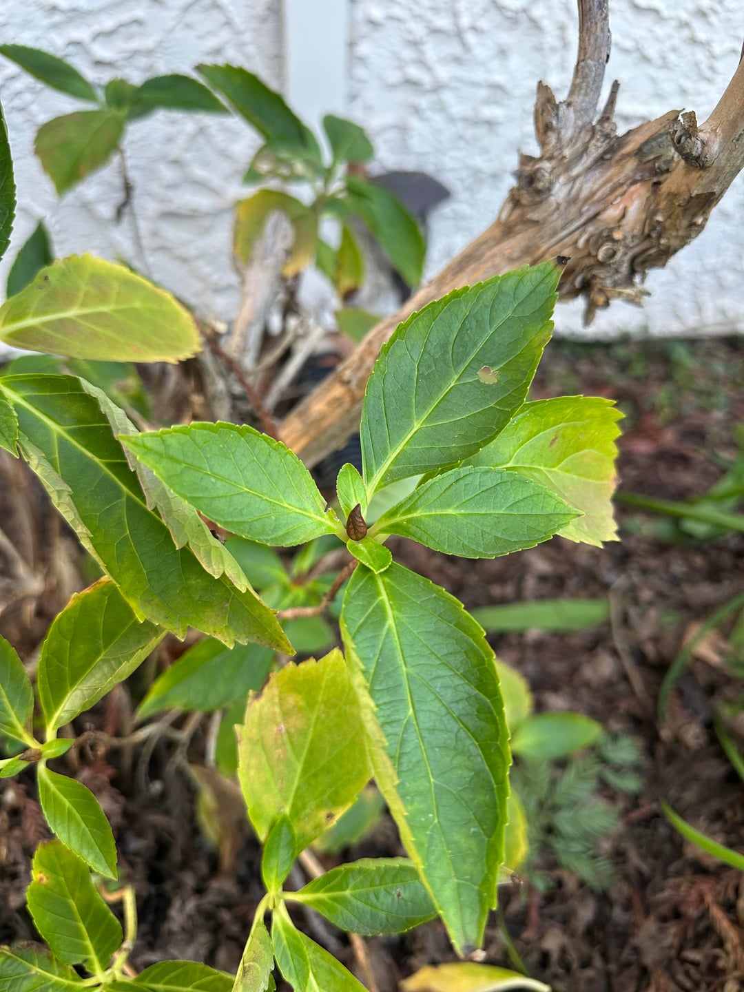 Hallo Leute, ich kann beim besten Willen nicht herausfinden, was für eine Art Hortensie das ist. Ich weiß nicht viel über sie und habe versucht, Unterschiede in den Blättern herauszufinden. Wir sind vor etwa 8 Monaten in dieses Haus gezogen und das Bewässerungssystem war kaputt, sodass die Bewässerung im Sommer sehr unregelmäßig war. Es ist jetzt behoben, also juhuu! Im Sommer blühte sie nicht. Bevor wir eingezogen sind, hat jemand einen kompletten Schnitt gemacht. Ich gehe davon aus, dass ich einmal kräftig und schön war, und ich würde es lieben, wenn es wieder so würde! Gibt es außerdem irgendwelche Tipps, warum es immer noch traurig aussieht? Bewässerungs- oder Nährstoffproblem? Danke!