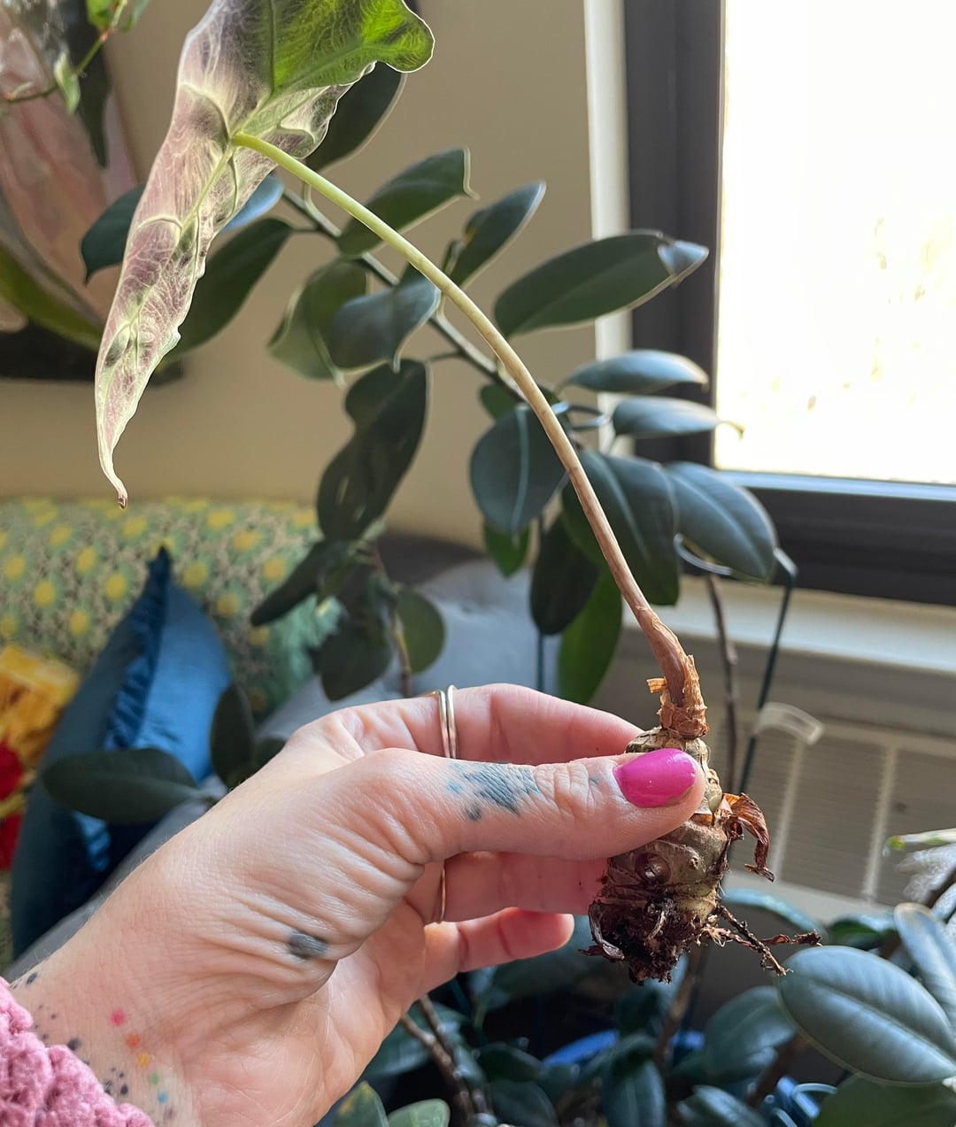 Diese blöde Pflanze hat letztes Jahr alle bis auf ein Blatt verloren und heute fiel mir auf, dass sie sich neigte, also zog ich leicht daran und das Ganze entwurzelte sich. Kann ich es so wie es ist ins Wasser stecken oder wie vermehre ich eine empfindliche Alokasie?