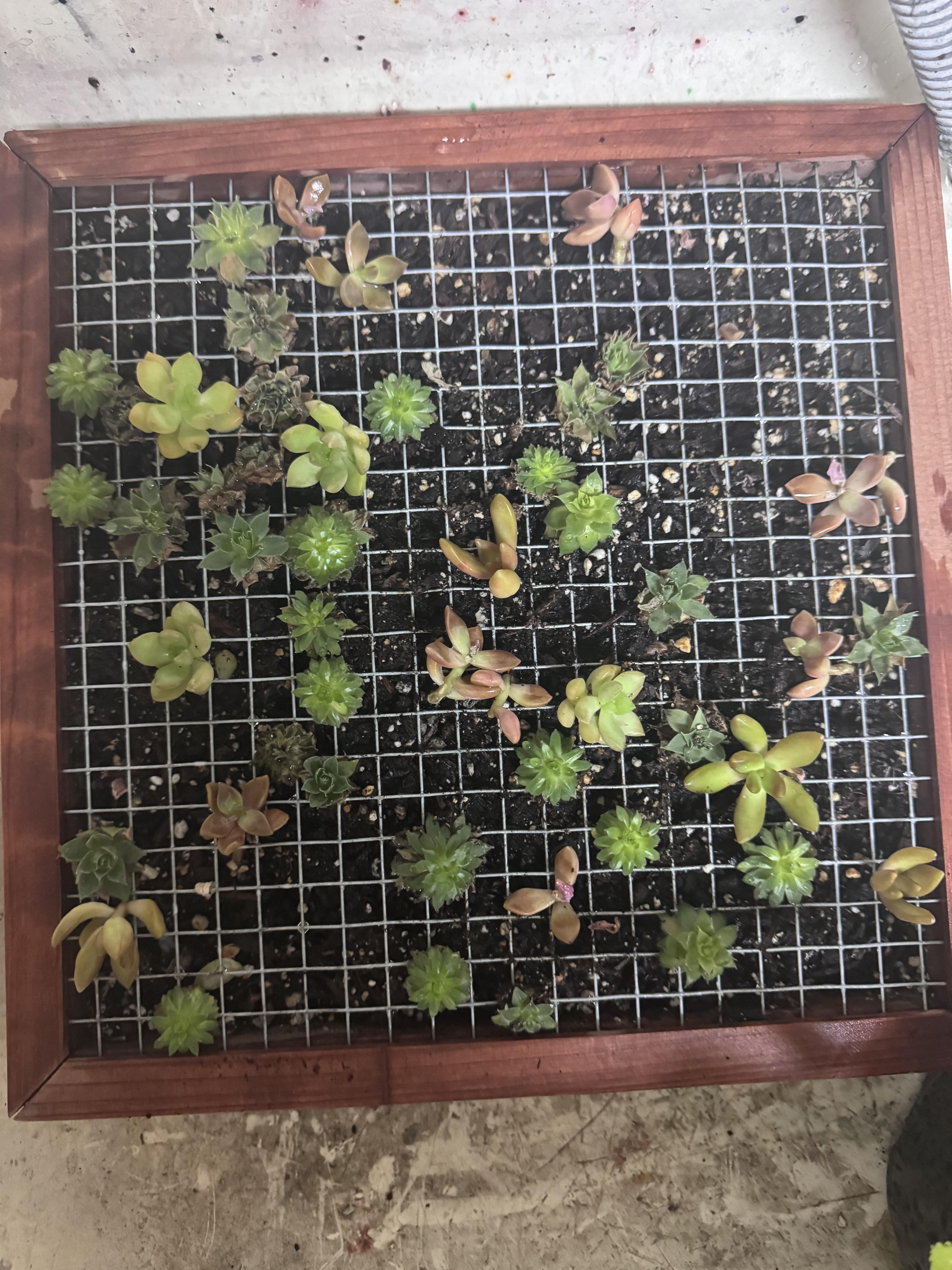 Hallo zusammen, ich habe im August eine DIY-Wohnwand geschenkt bekommen. Das Set wurde mit dem hier gezeigten Rahmen, Erde und Pflanzenstücken geliefert. Die Anleitung lautete, die Pflanzen etwa 8 Wochen lang in Wasser einweichen zu lassen und dann zu pflanzen. Aber in 5 Monaten scheinen die meisten Pflanzen abgestorben/abgefallen zu sein. Ich habe mir nicht einmal die Mühe gemacht, dieses Ding horizontal zu machen.