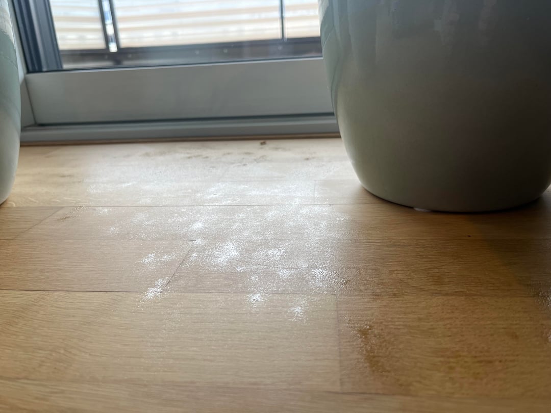 Seit einer Weile sind uns um die Limettenpflanze Flecken auf dem Boden aufgefallen die klebrig sind. Beim normalen Boden wischen gehen sie nicht weg aber mit etwas schrubben hab ich sie wegbekommen.