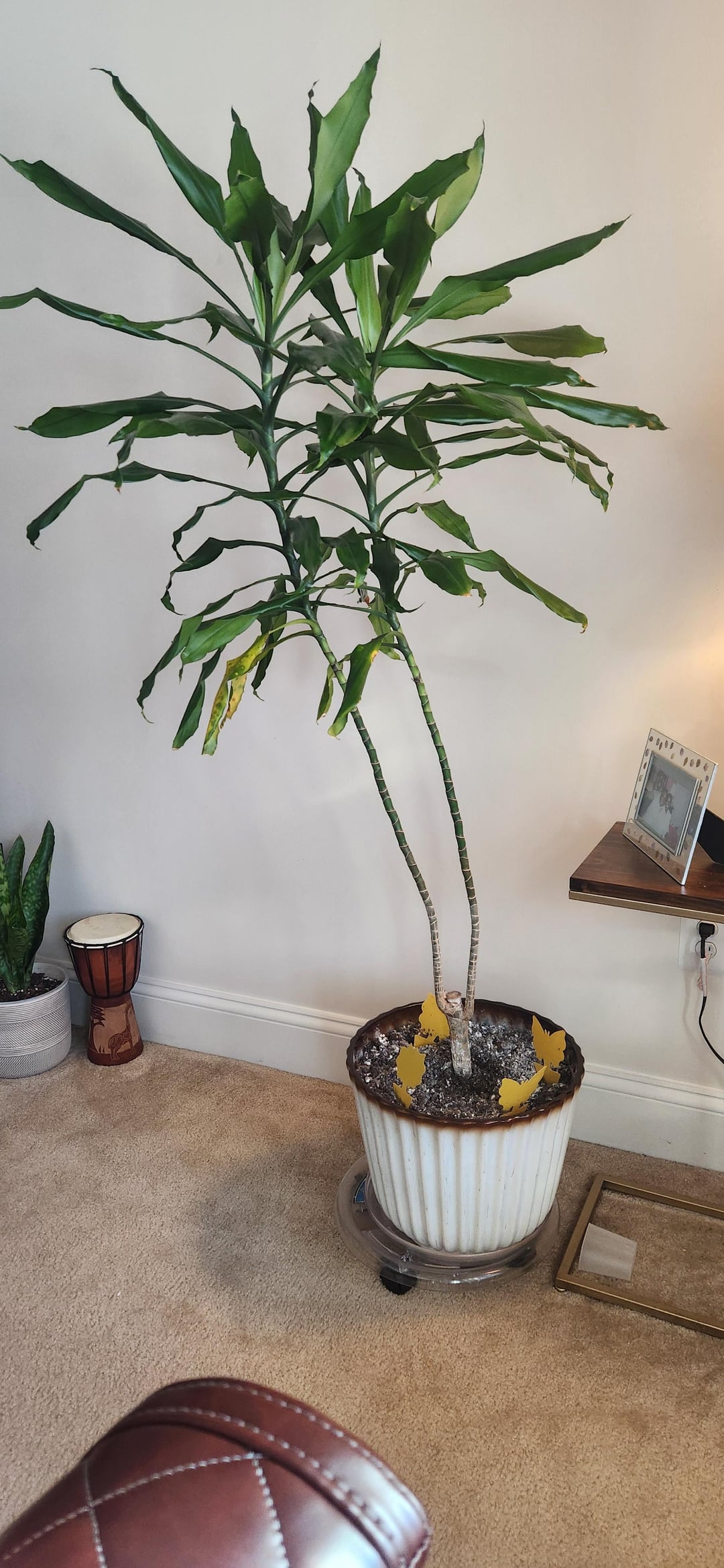 5 Fuß große Pflanze. Musste wegen einer scheinbaren Infektion 7 Blattreihen abschneiden. Soooo langbeinig. Soll ich die Beine abschneiden? Ich möchte die Zwillinge nicht trennen. Hat ihn schon als Baby großgezogen. Wie heilen?