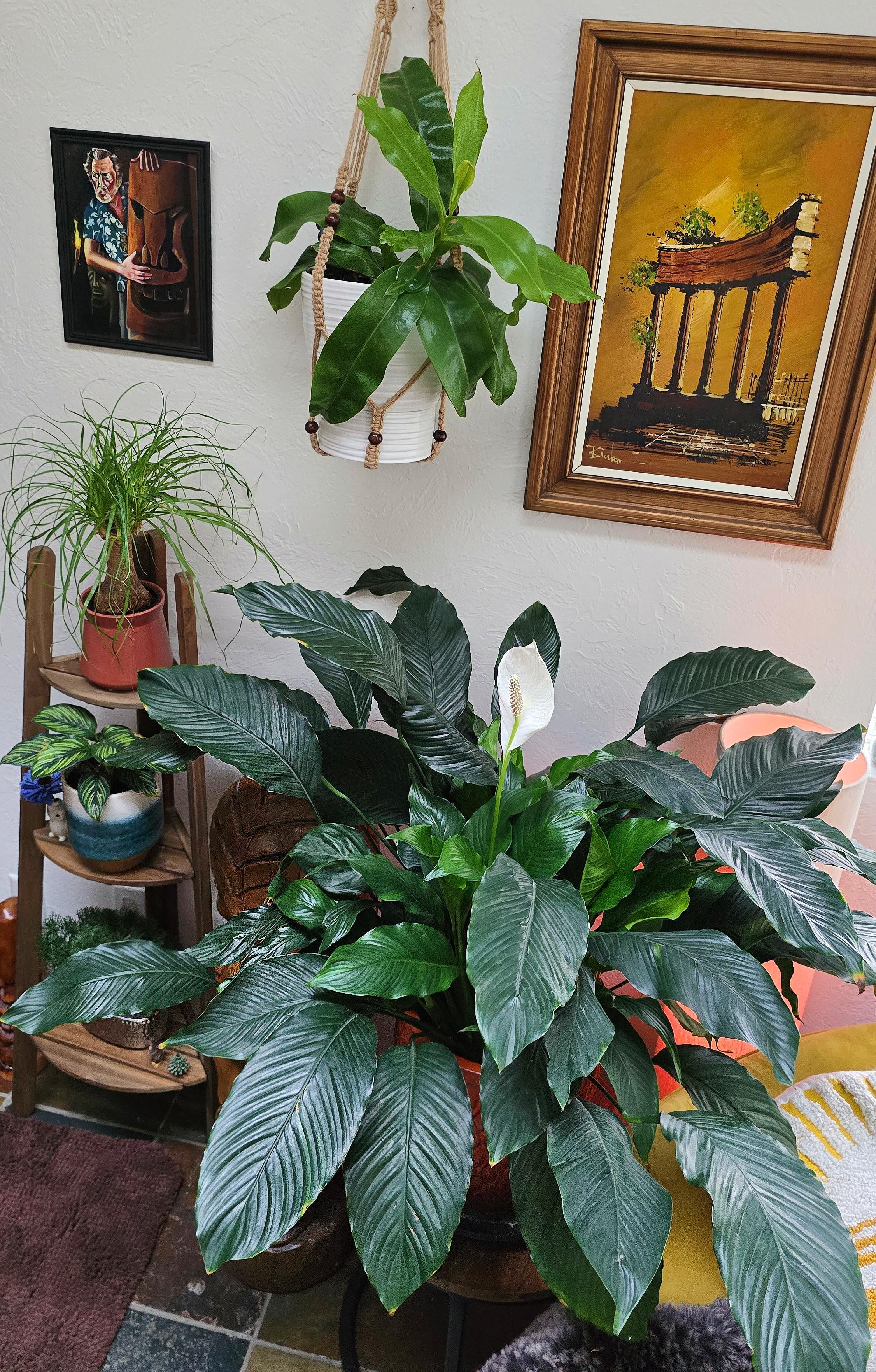 So healthy love the green folage, mine needs a bit of love and care. Moved it outside on the front porch, leaves not as healthy or green like yours. Has bloomed though.