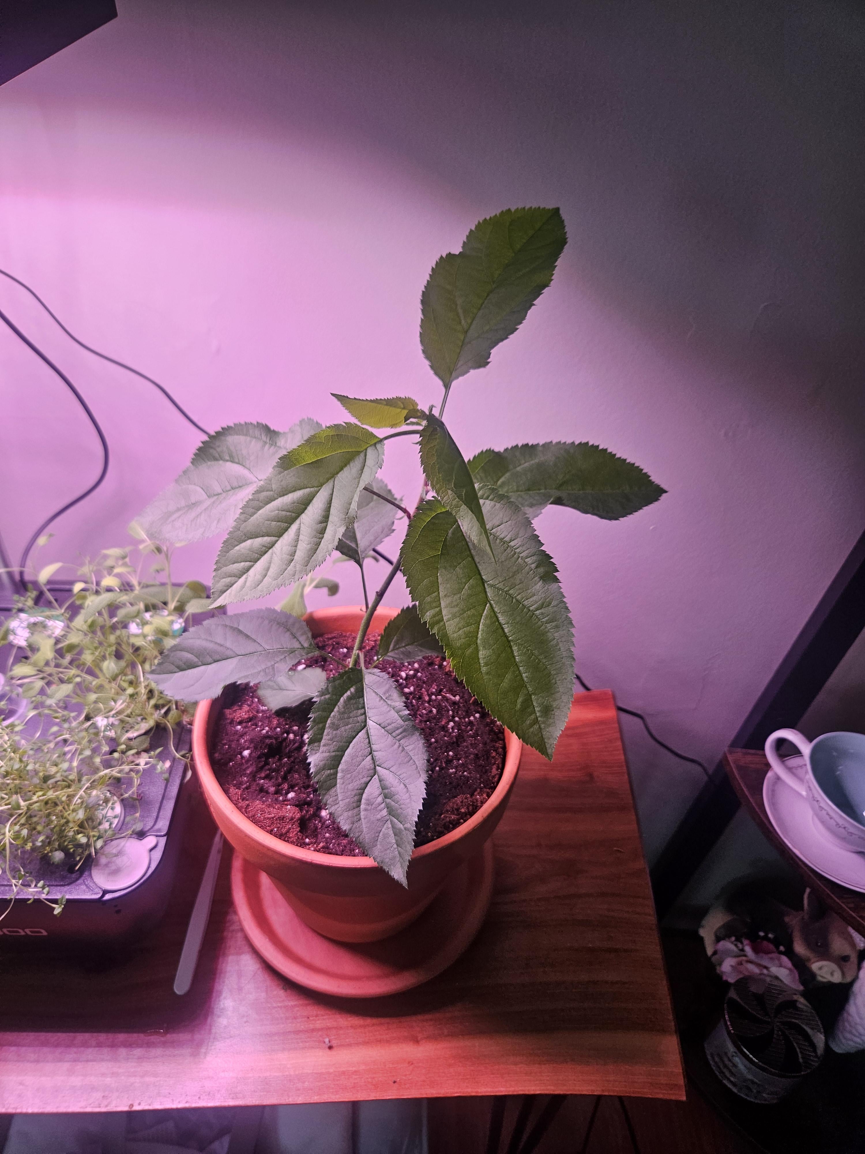 Der Samen, mit dem ich angefangen habe, stammte aus einem Obstkorb, den wir bei der Geburt meiner Tochter bekommen hatten. Ich würde ihn gerne ein Jahr lang drinnen aufbewahren und ihn im nächsten Frühjahr draußen pflanzen.