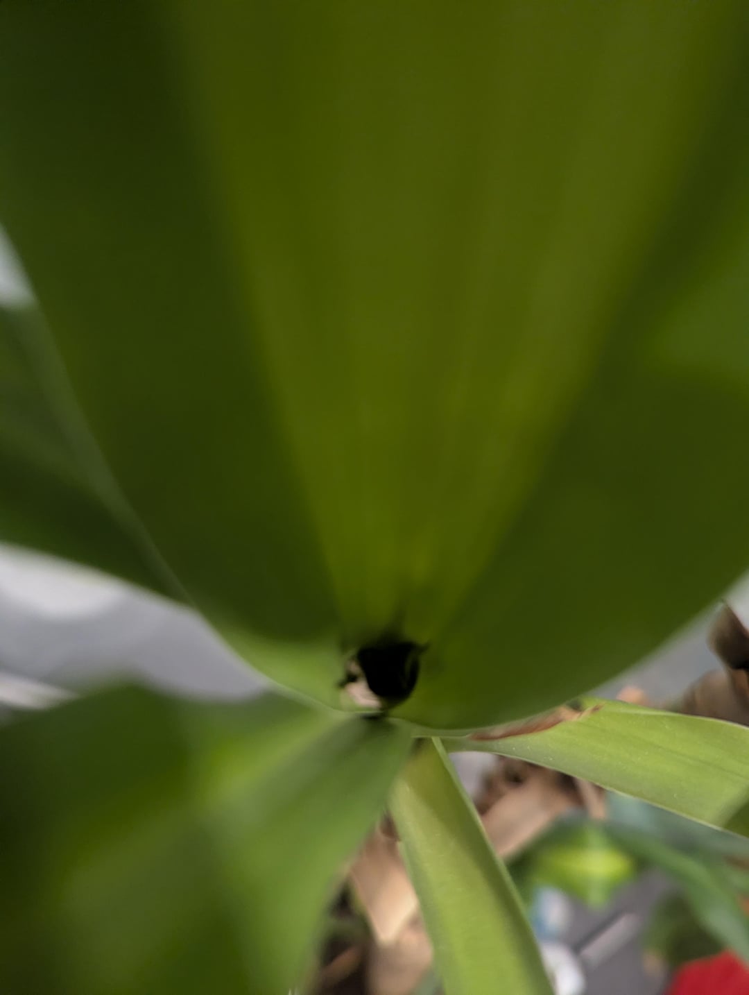 Ich hatte Thripse im Verdacht, daher steht er jetzt im Bad, weil ich ihn abgespült habe, aber ich sehe weder die Tiere noch Kot oder Larven.