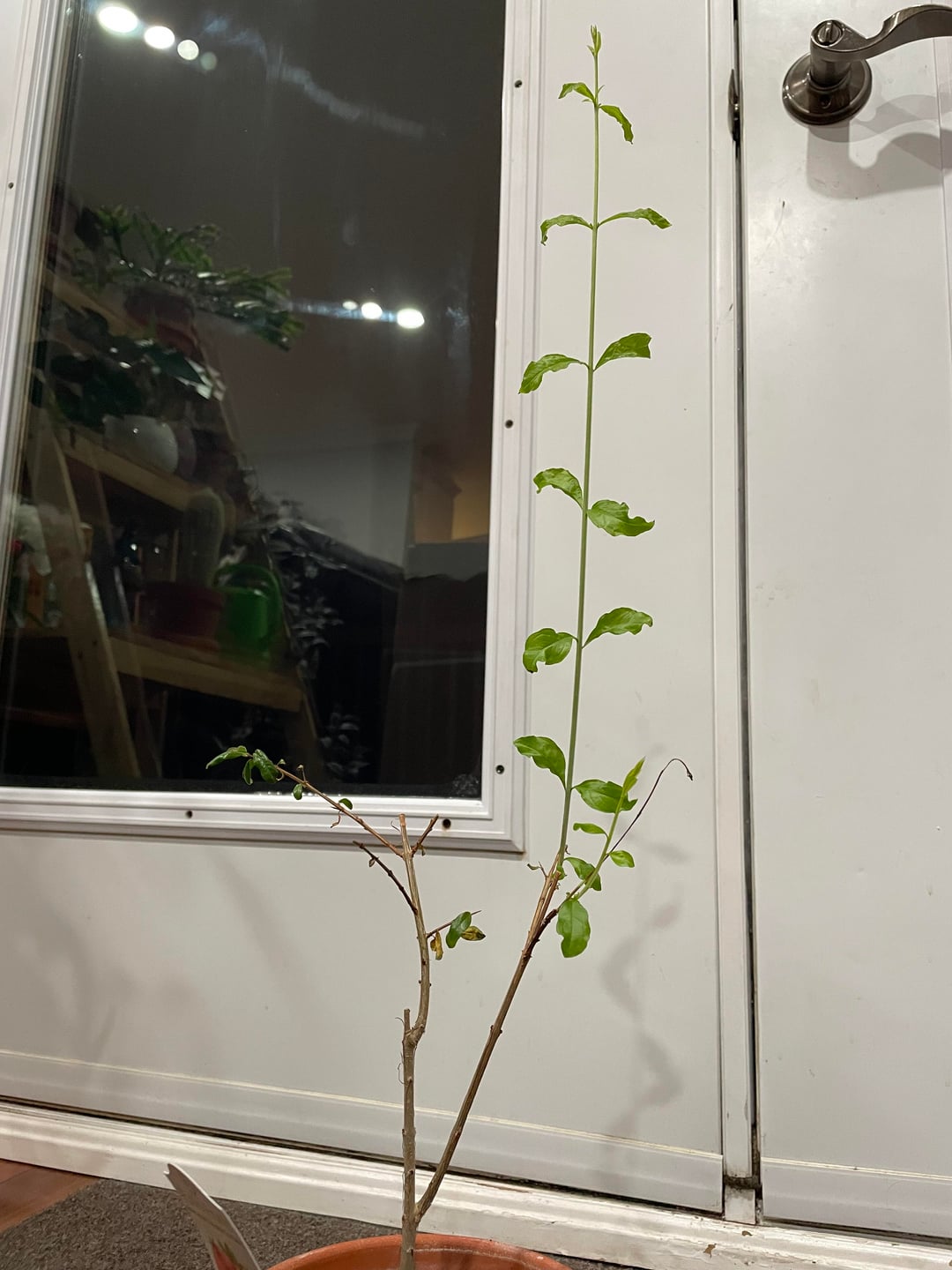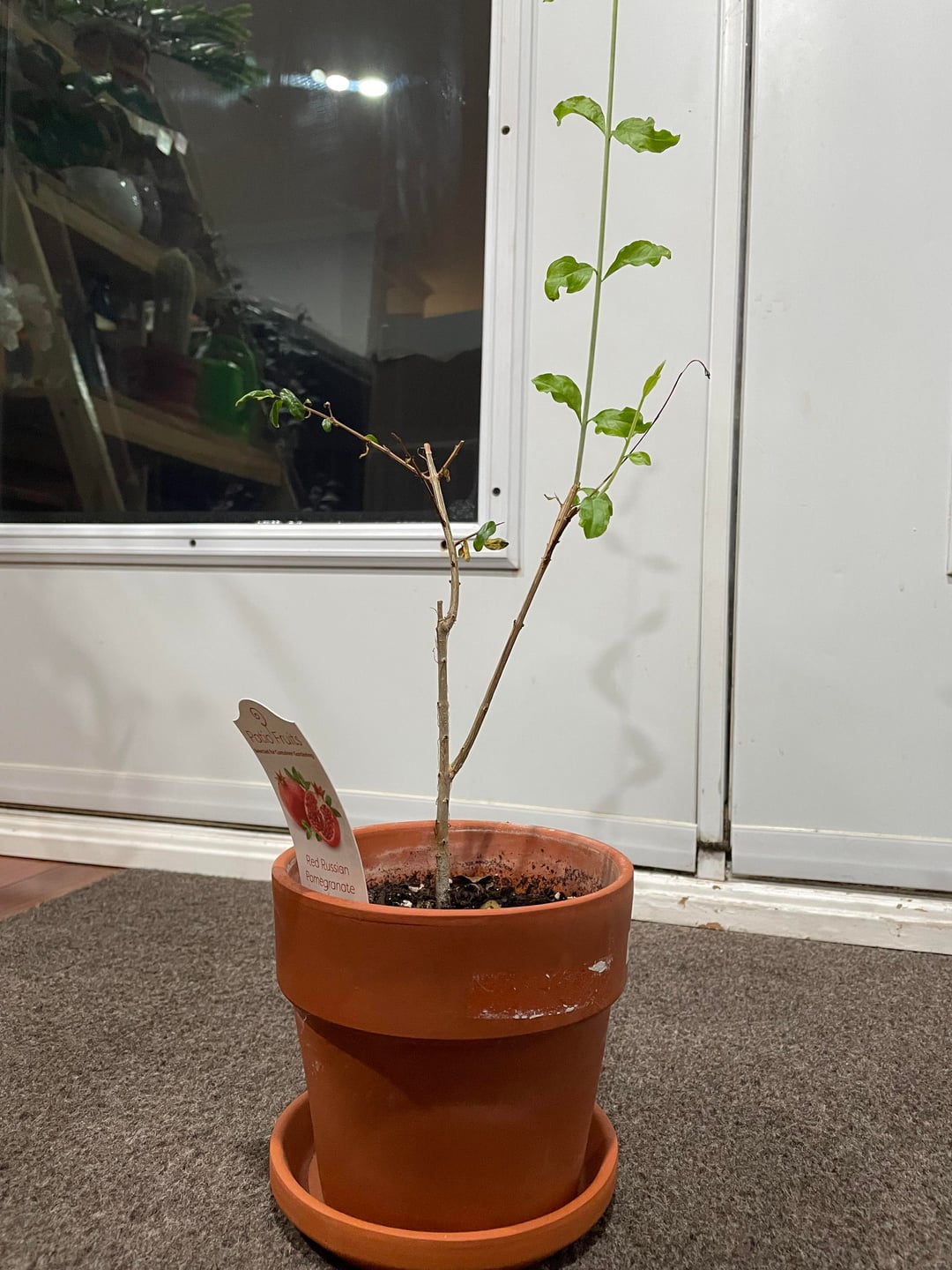 Hey, ich habe diesen roten russischen Granatapfelsämling bekommen und suche nach Tipps und Tricks für den Winter. Ich lebe in einem nördlichen Klima mit begrenztem Sonnenlicht. Ich habe diese Pflanze letztes Jahr als Setzling gekauft, in einen Topf gesetzt und über den Sommer auch beschnitten.