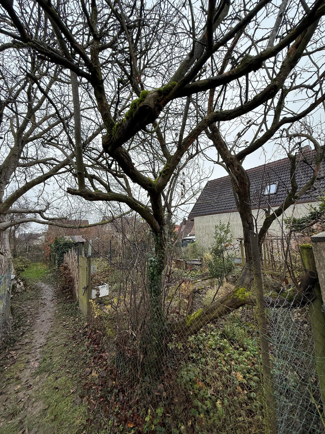Über dem Garten schwebt ein großer Ast des Walnussbaums, der wird entfernt.