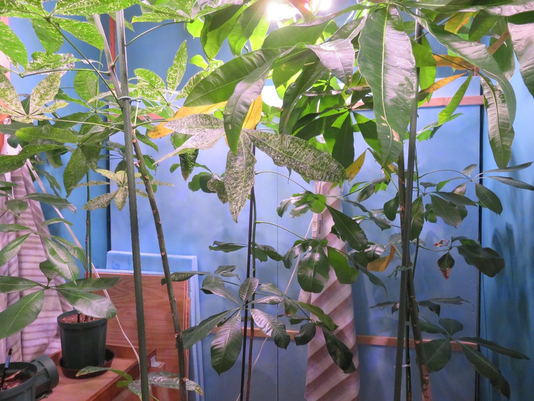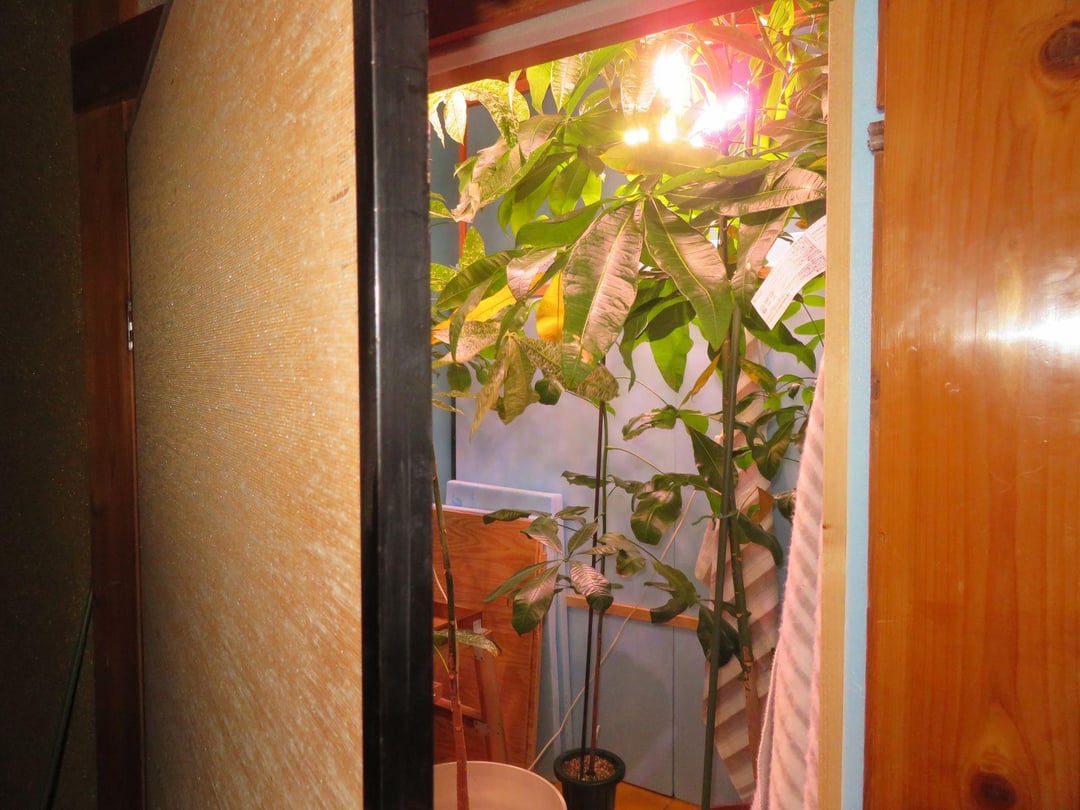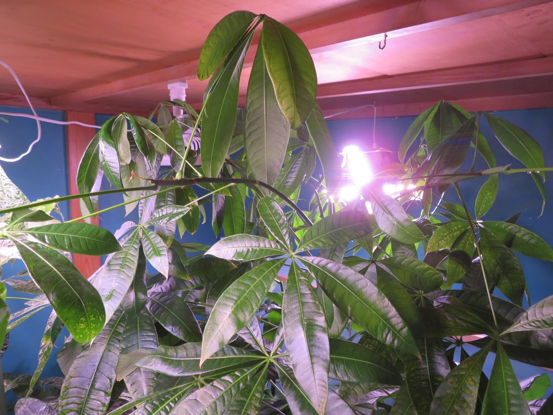 Das Foto zeigt mein Pachira-Zimmer. Es handelte sich ursprünglich um einen kleinen, völlig dunklen Lagerraum, den ich geleert und gezielt für Pflanzen umfunktioniert habe.