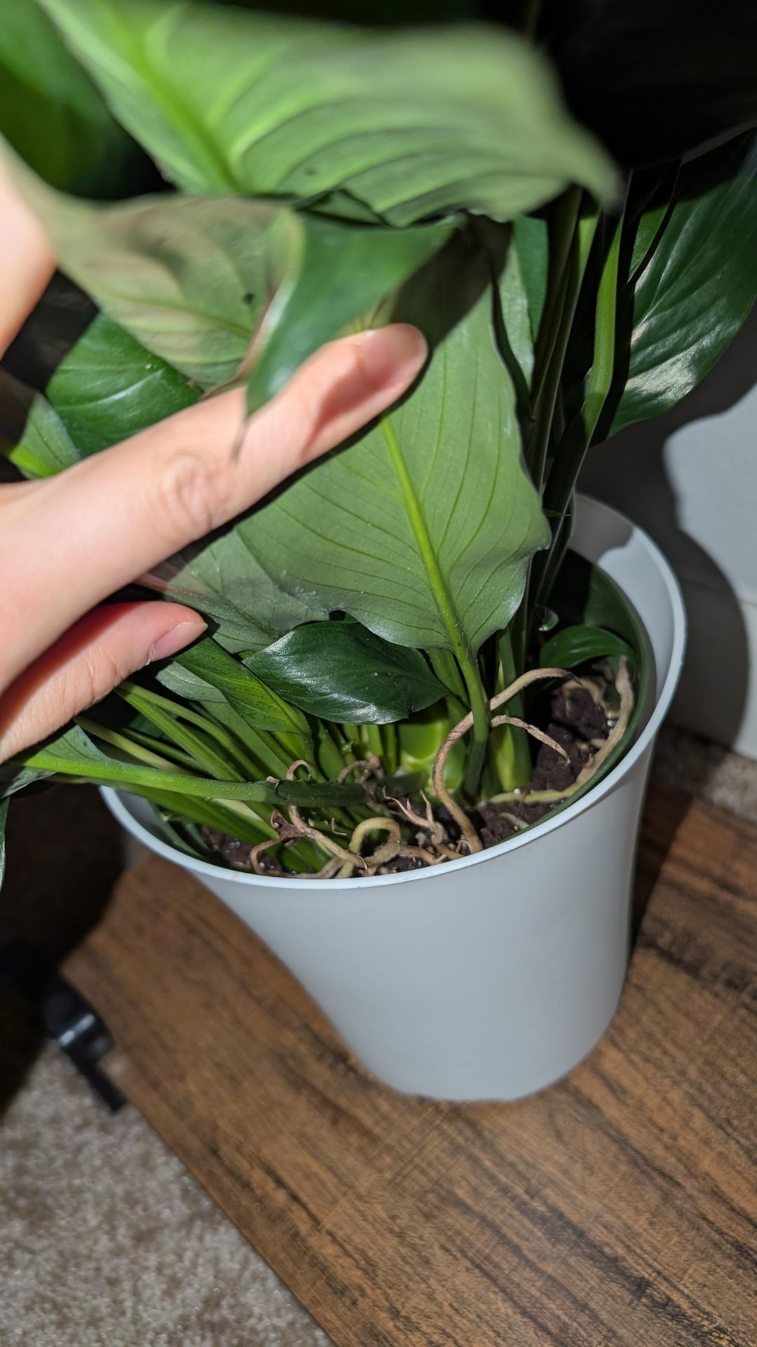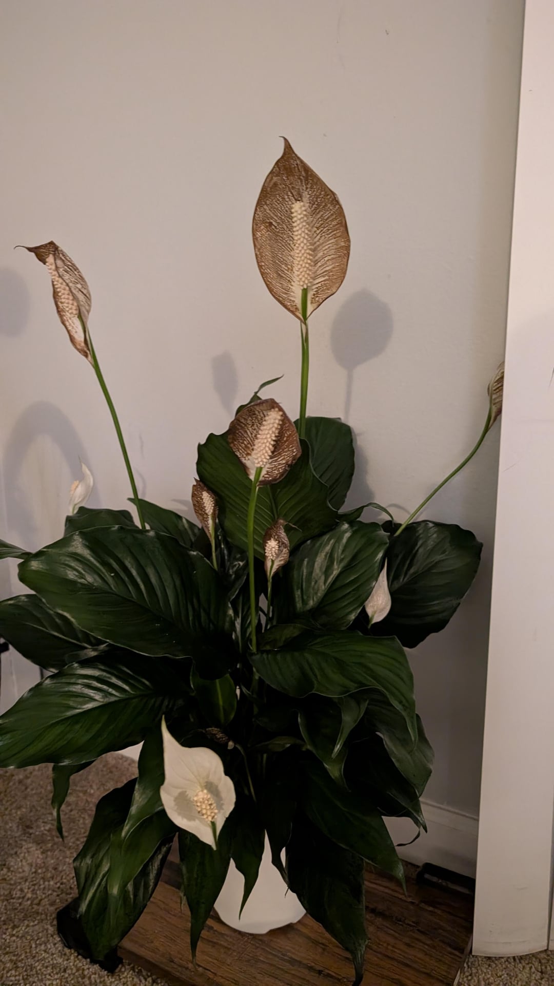 Ich habe heute gerade eine Friedenslilie von Costco gekauft und ihre Blüten werden braun, als sie nach Hause kommen. Ich habe noch nichts getan, einschließlich Gießen. Kann es sein, dass ein paar Minuten eisiger Kälte (5°F) der Grund dafür sein könnten? Soll ich sie übrigens umtopfen? Scheint, als wären ihre Wurzeln bereits an die Oberfläche gekommen.