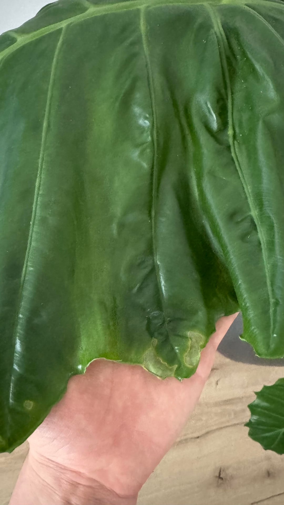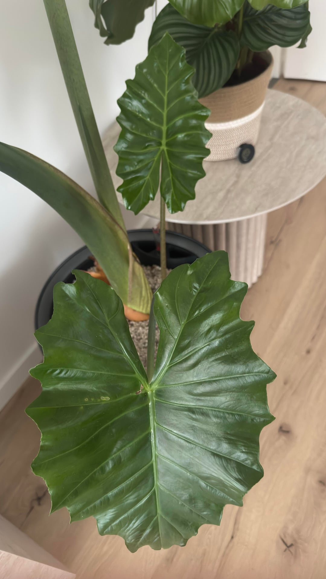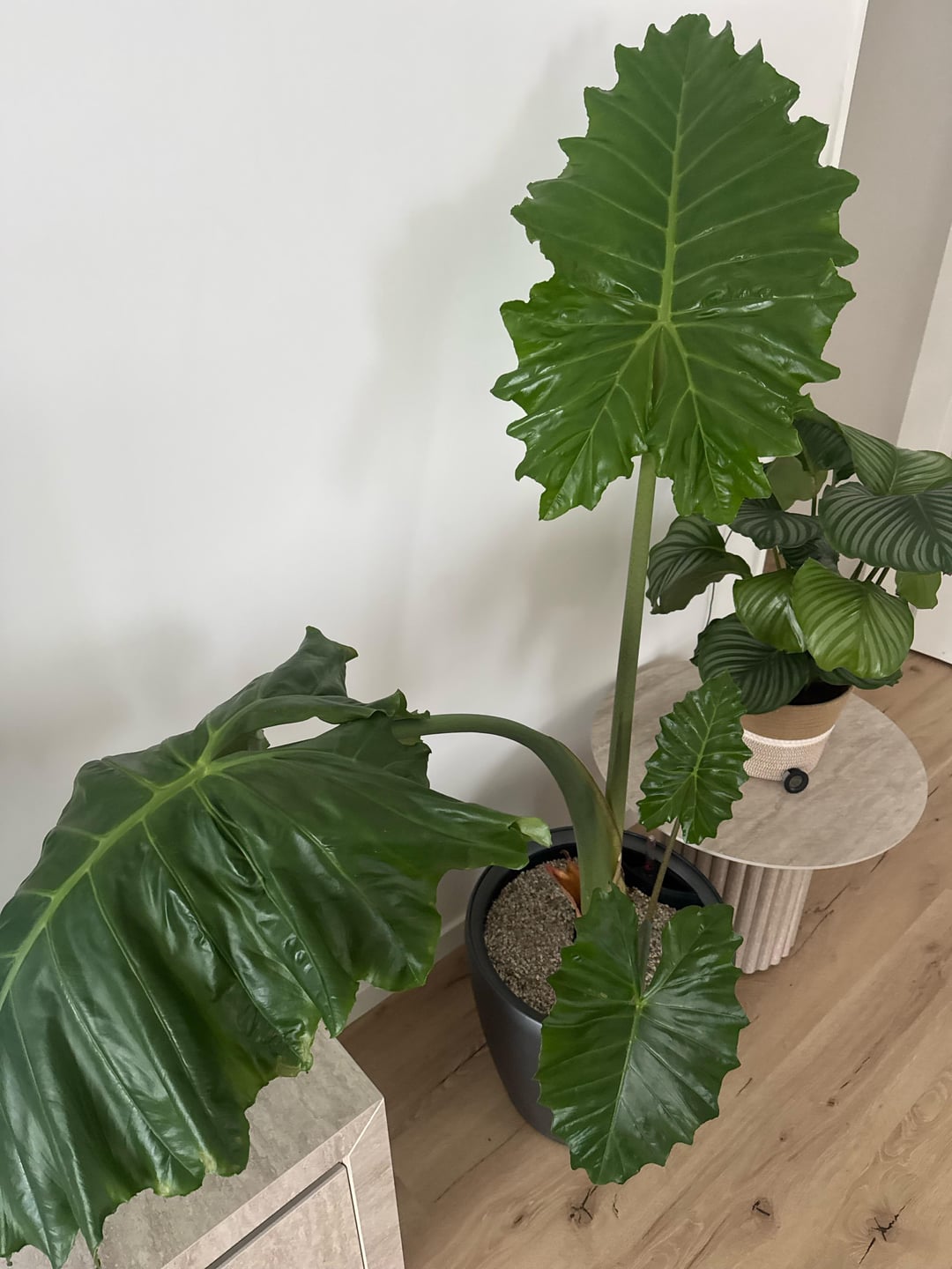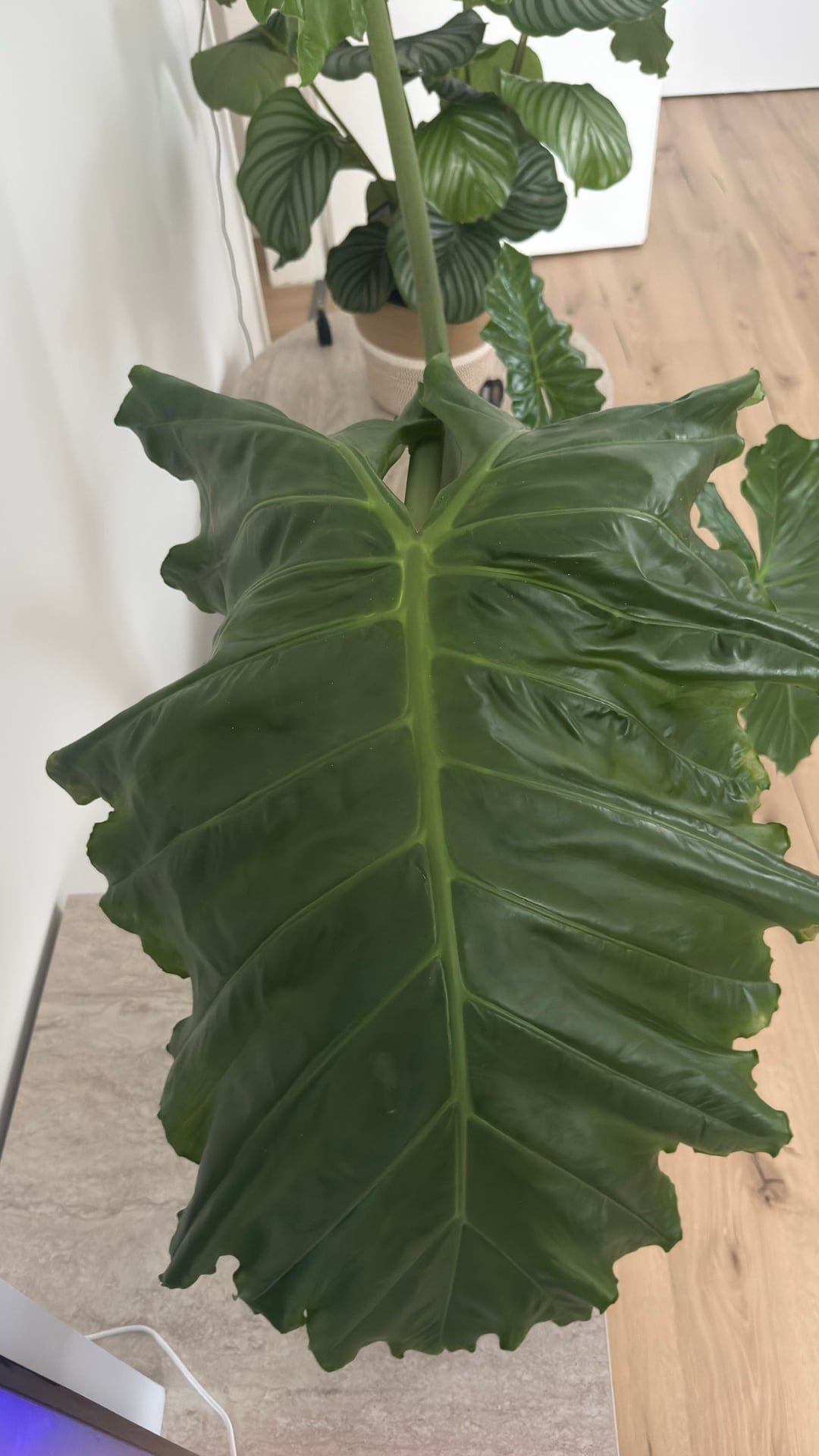 Zwei der Blätter habe ich mittlerweile schon los schneiden müssen, weil sie nach einer Weile von alleine abknicken sind. Trotzdem hat die Pflanze neue Blätter sprissen lassen.