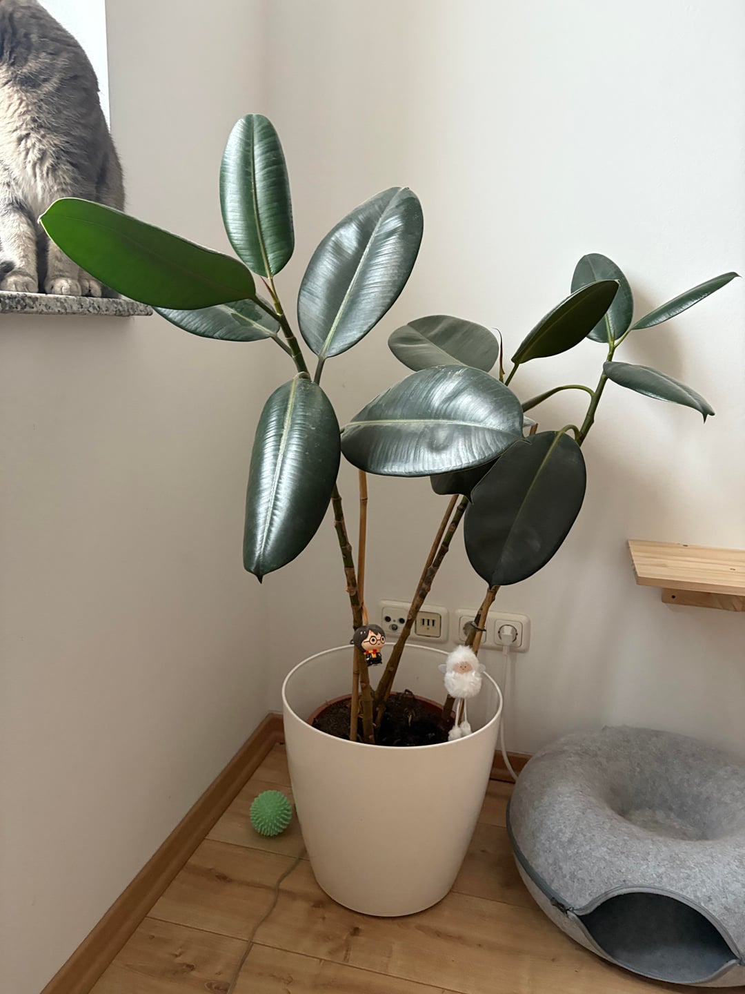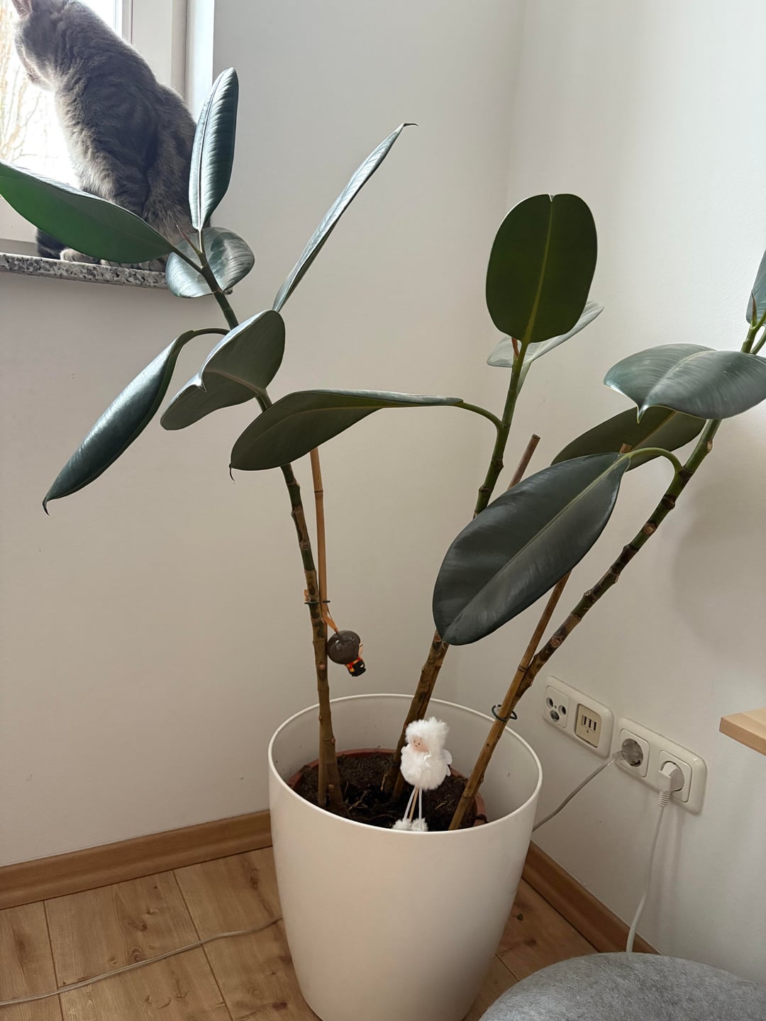 ich habe diesen Gummibaum seit ca einem Jahr in dieser Ecke stehen. Leider hat er immer wieder Blätter verloren und sieht nun so aus… etwas kahl und traurig. 🙁