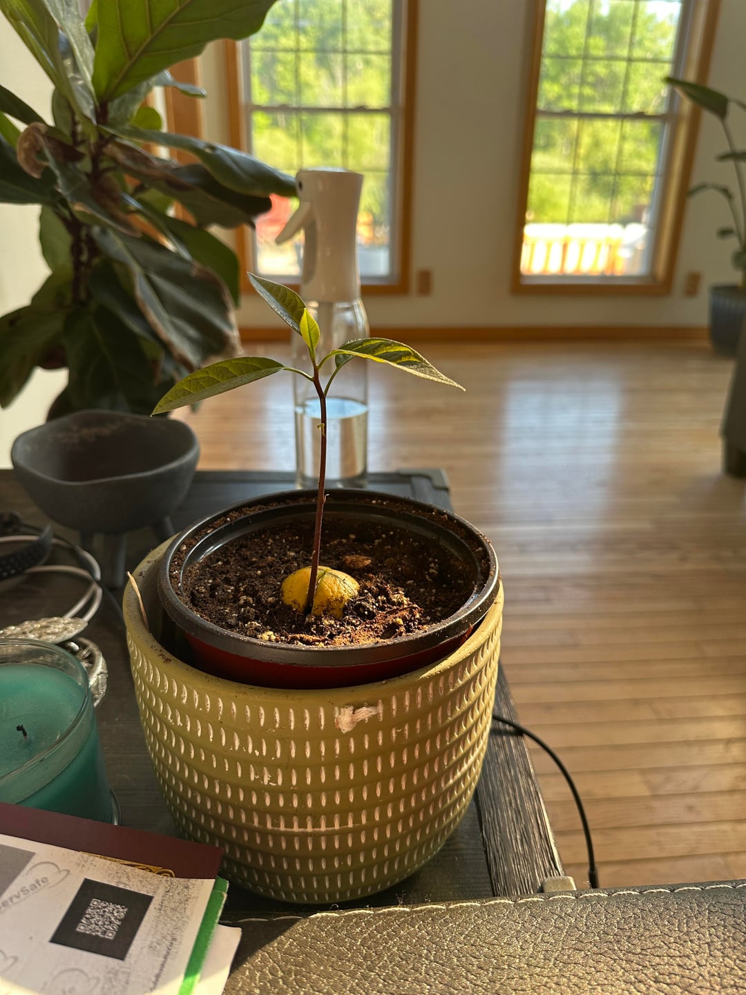 Hallo zusammen, das ist meine Avocadopflanze, die ich aus einem Samen gezüchtet habe (sie begann vor über einem Jahr zu keimen). Die Pflanze ist seit August in Erde eingetopft und ich möchte sie gerne dazu ermutigen, sich zu verzweigen. Es hat viel Laub, daher habe ich das Gefühl, dass es ihm schaden würde, den obersten Knoten abzuschneiden, aber ich möchte es auch wirklich nicht töten, da ich sehr an ihn gewachsen bin. Für jeden Rat wäre ich sehr dankbar (das erste Bild zeigt, wie er zum ersten Mal in die Erde ging, das zweite von heute).