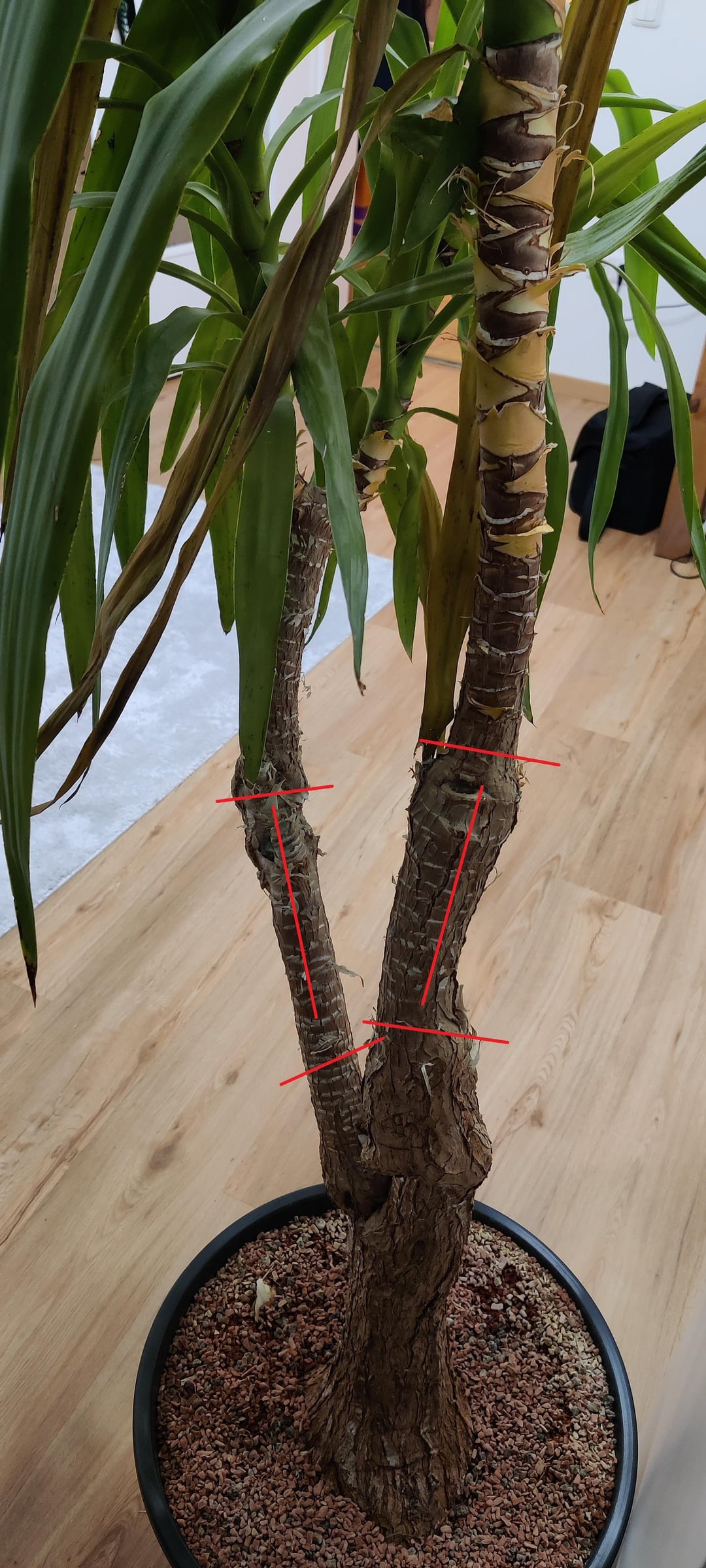 Zum Hintergrund: ich habe zum Einzug in meine Zweitwohnung – einfach nur um den leeren Platz ein bisschen zu füllen – über Kleinanzeigen eine geschenkte Yucca in nicht ganz gutem Zustand beschafft.